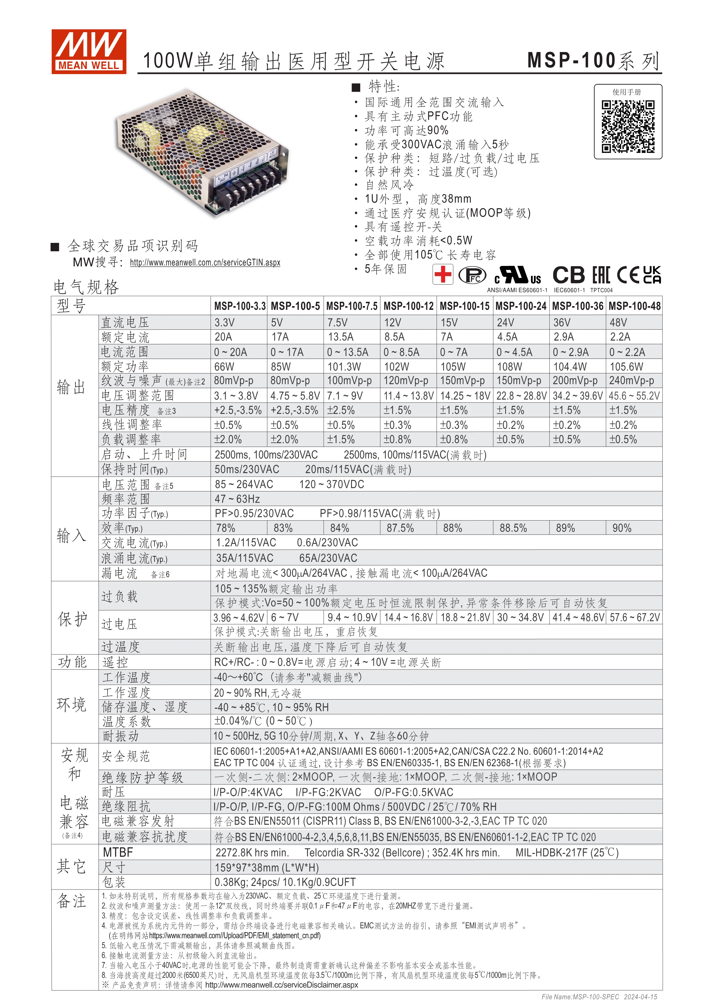 醫(yī)療用等級,內(nèi)建主動式功率因子矯正功能(active PFC) 通過醫(yī)療類安規(guī)認(rèn)證(MOOP等級) 高效能,空載待機消耗瓦數(shù)<0.5W~0.8W 5年保固期