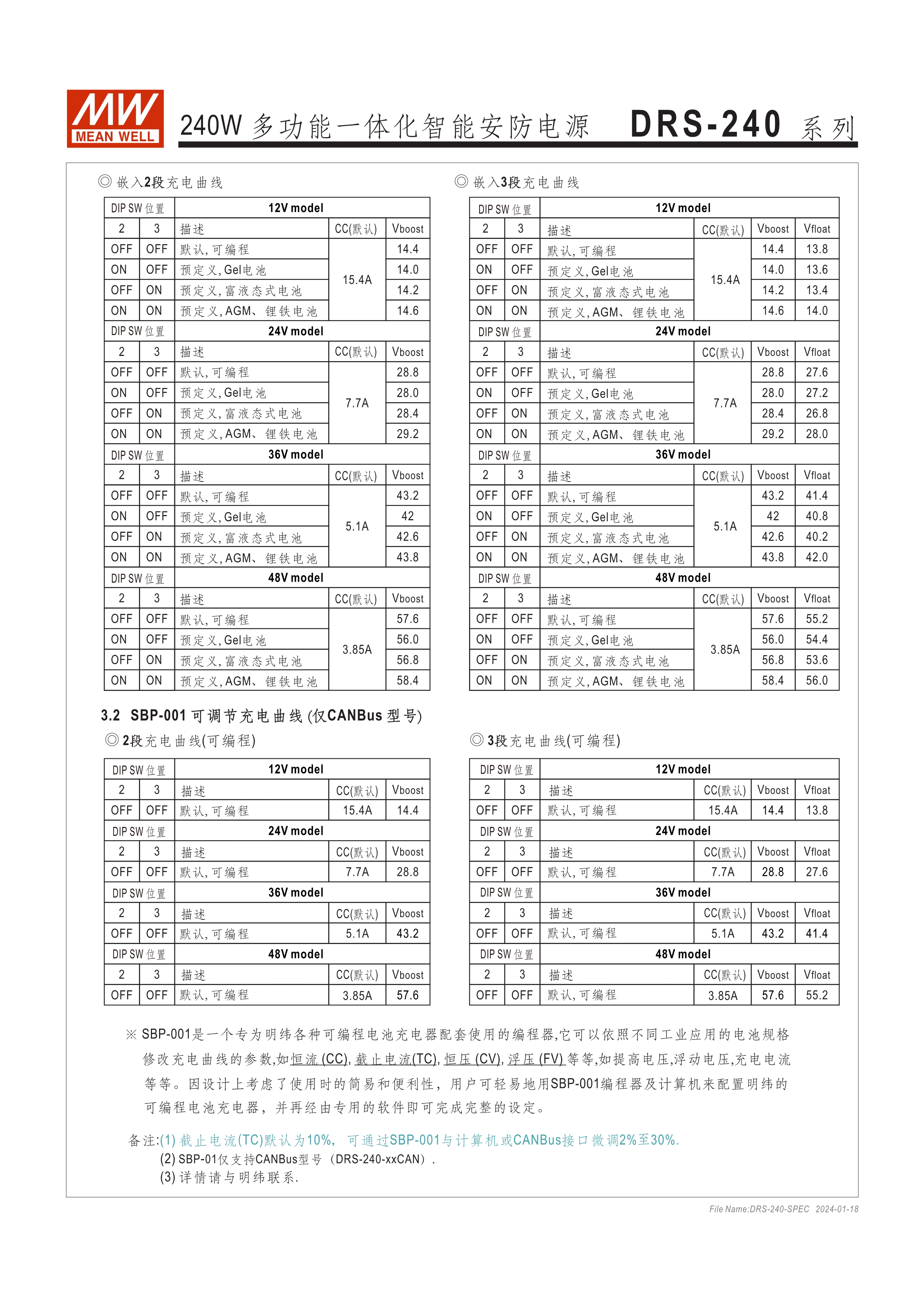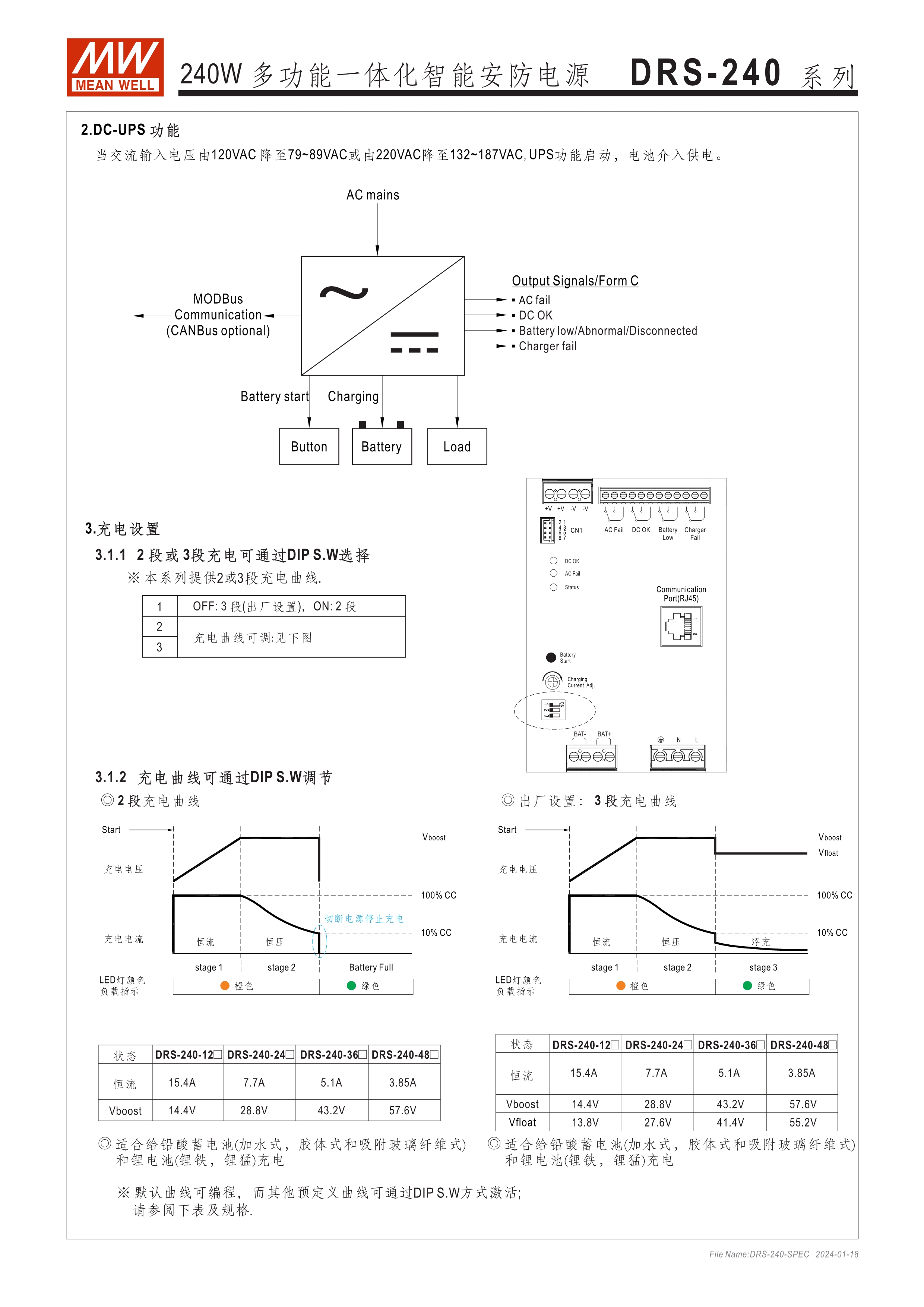 通用輸入90~305VAC(可使用277VAC) 具備電源供應(yīng)器、DC不斷電、電池充電器和狀態(tài)監(jiān)控多合一功能 訊號警示設(shè)計(jì)符合UL2524, NFPA 1221, BS EN/EN54-4和GB17945 交流故障的Form C繼電器接點(diǎn)和顯示電池不足、充電器故障及DC-OK的LED指示燈 內(nèi)建MODBus通訊協(xié)定,并可選CANBus 可搭配SBP-001編程器調(diào)整充電曲線