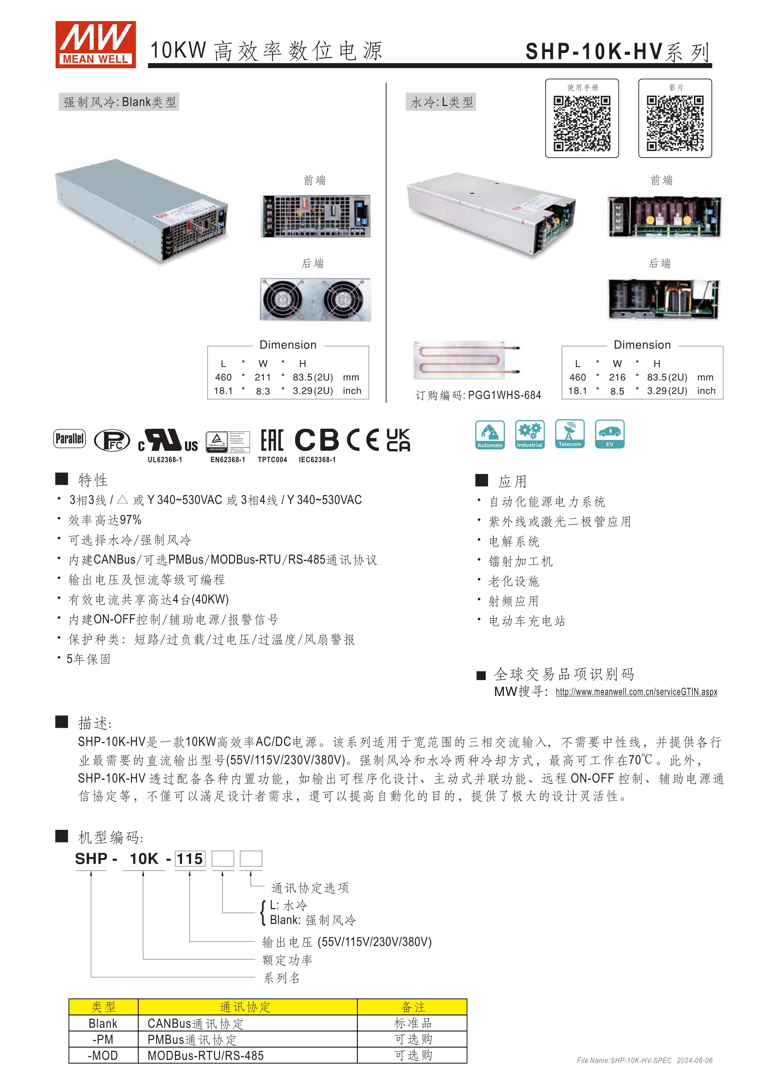 三相三線無中性線/340~530VAC寬輸入范圍 可選擇水冷/強(qiáng)制風(fēng)冷 內(nèi)建CANBus/可選PMBus通訊協(xié)議/MODBus-RTU/RS-485 輸出電壓及恒流等級可編程 有效電流共享高達(dá)4臺(tái) 內(nèi)建ONOFF控制/輔助電源/報(bào)警信號(hào) 5年保固