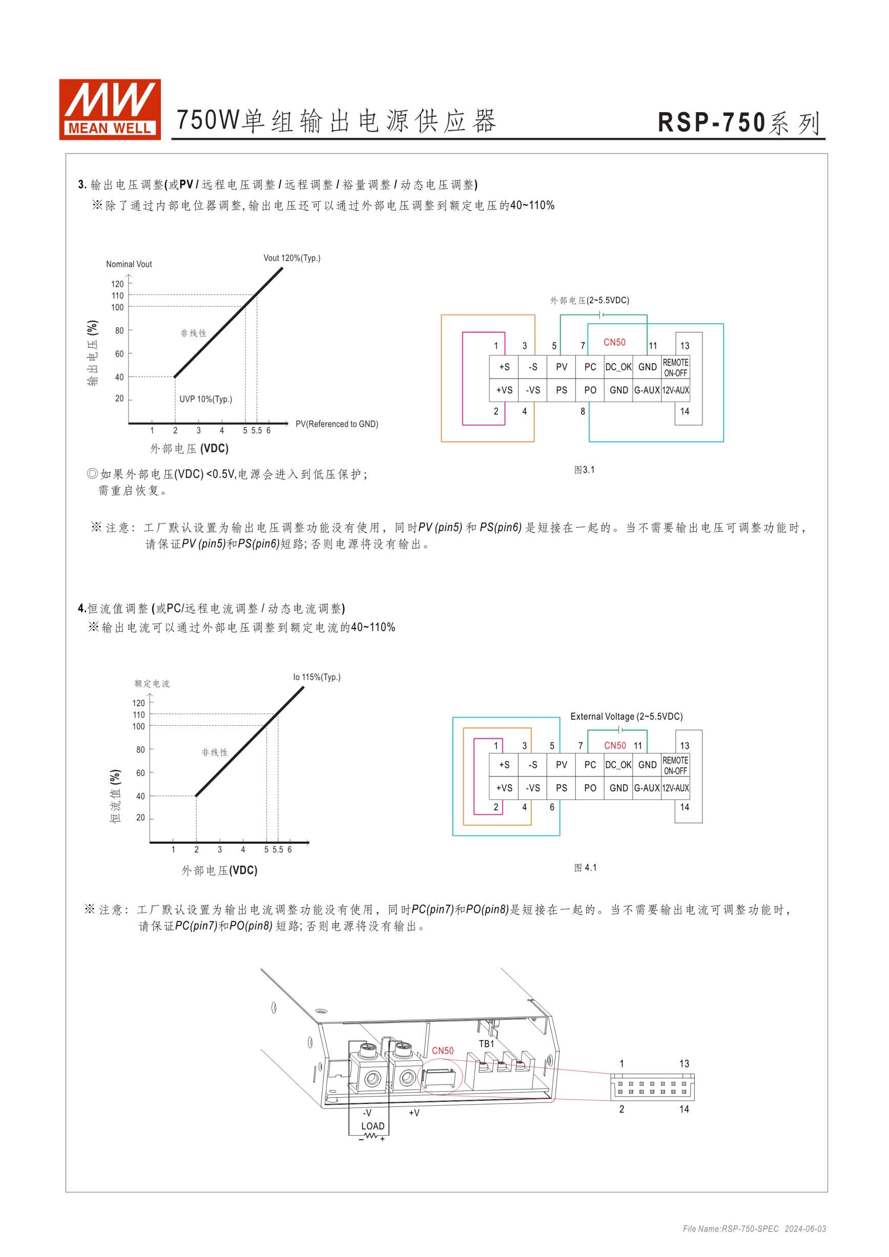 內建主動式功率因子矯正功能(active PFC) 輸出電壓可程序 輸出電流(Icc)可程序 (RSP-750/1600 only) RSP-750/1000/1600/2000為1U(41mm)低高度設計,(RSP-1500/2400/3000為2U) 內建主動式并聯功能(除RSP-750) 5年保固期