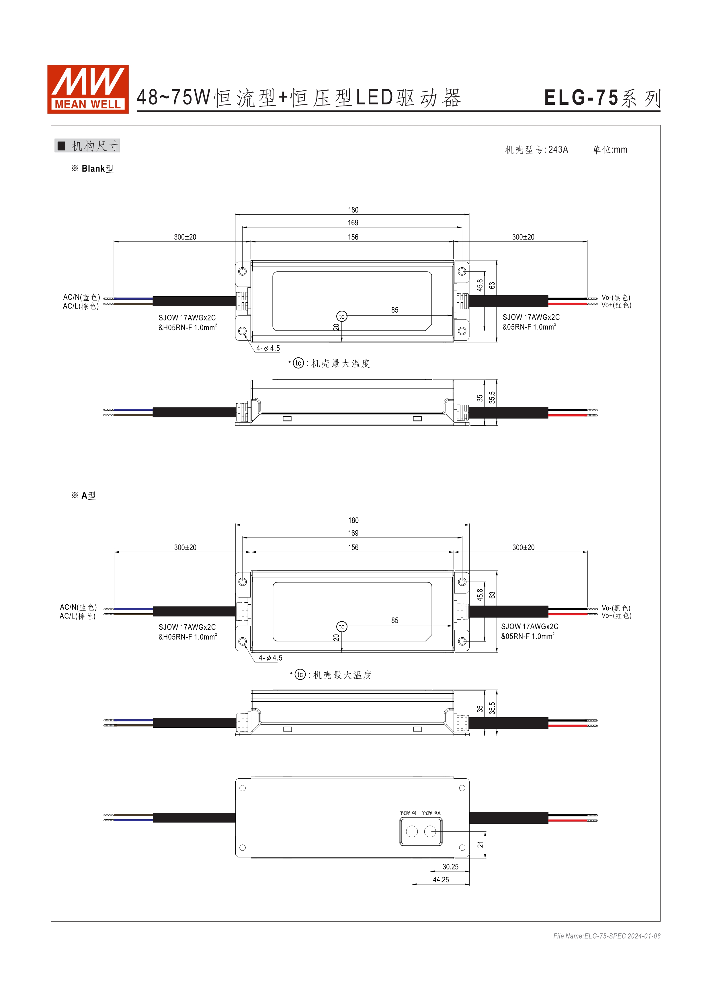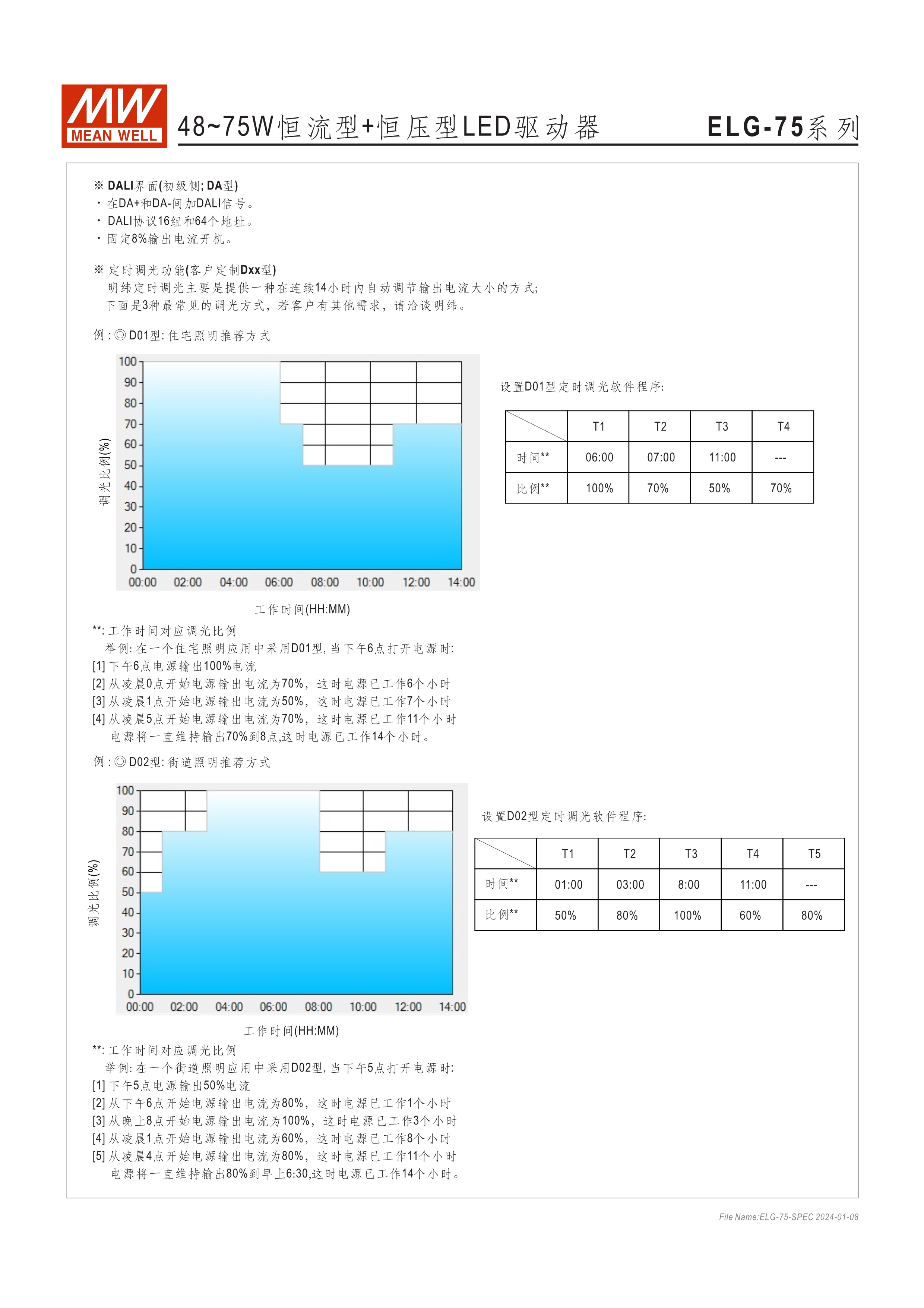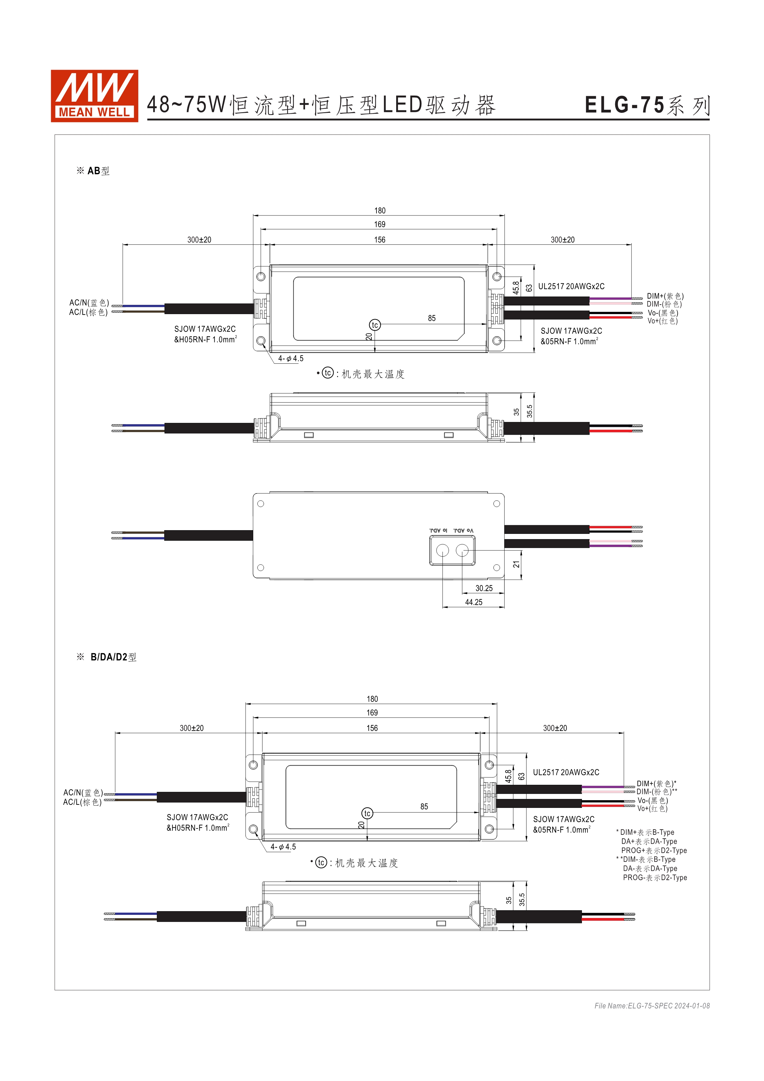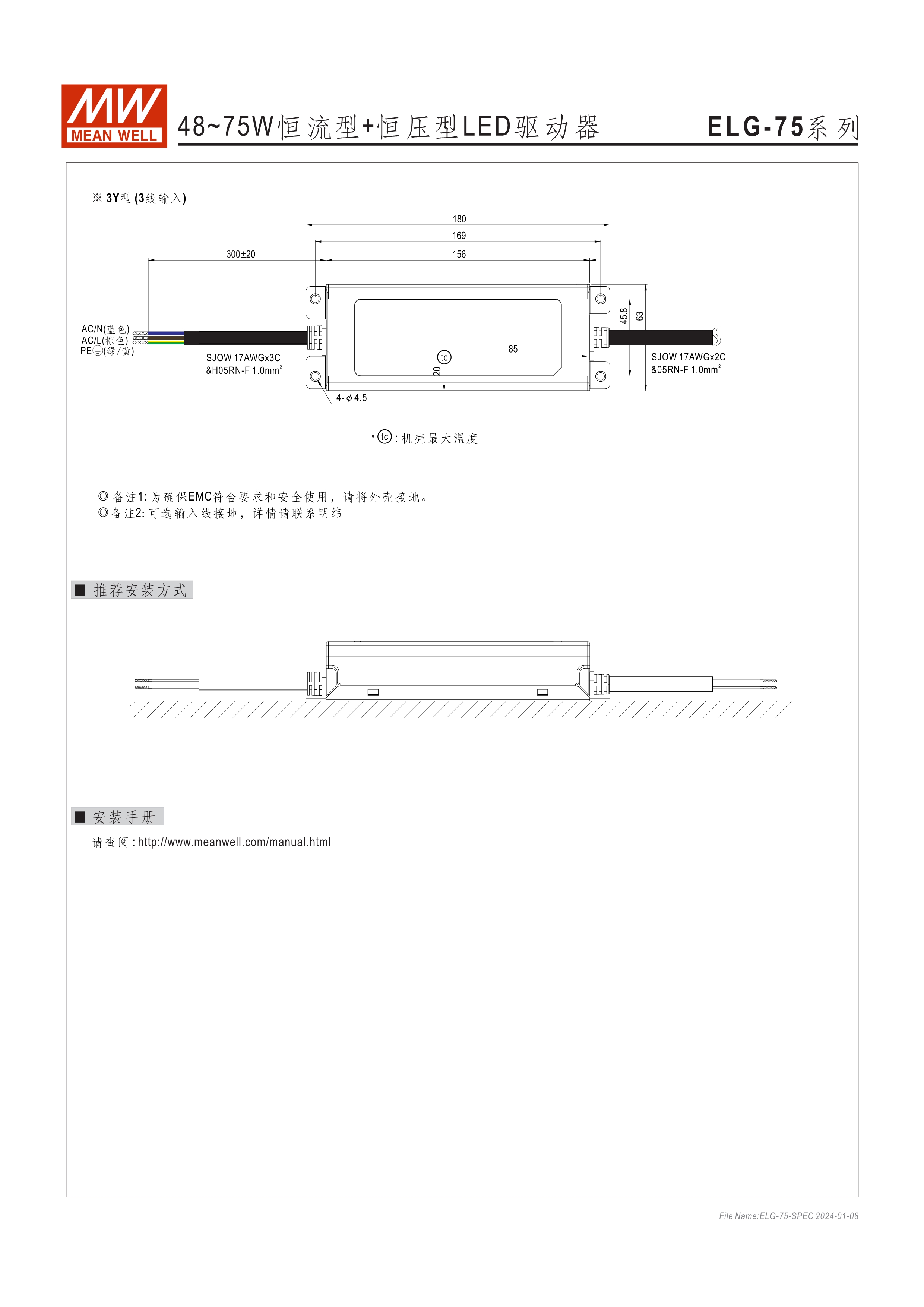輸入范圍100~305VAC 金屬外殼,IP67/IP65防護等級可用于戶外與室內(nèi) 功能選項 : 輸出可經(jīng)由電位器調(diào)整;三合一調(diào)光(0~10Vdc或10V PWM信號或電阻,可關斷);智能定時調(diào)光;DALI;輔助直流輸出(ELG-150 BE-Type) Type "HL" LED電源適用在安裝于Class I, Division 2 類 危險地點之照明燈具 適合于LED路燈及戶外LED照明等應用 5年保固期