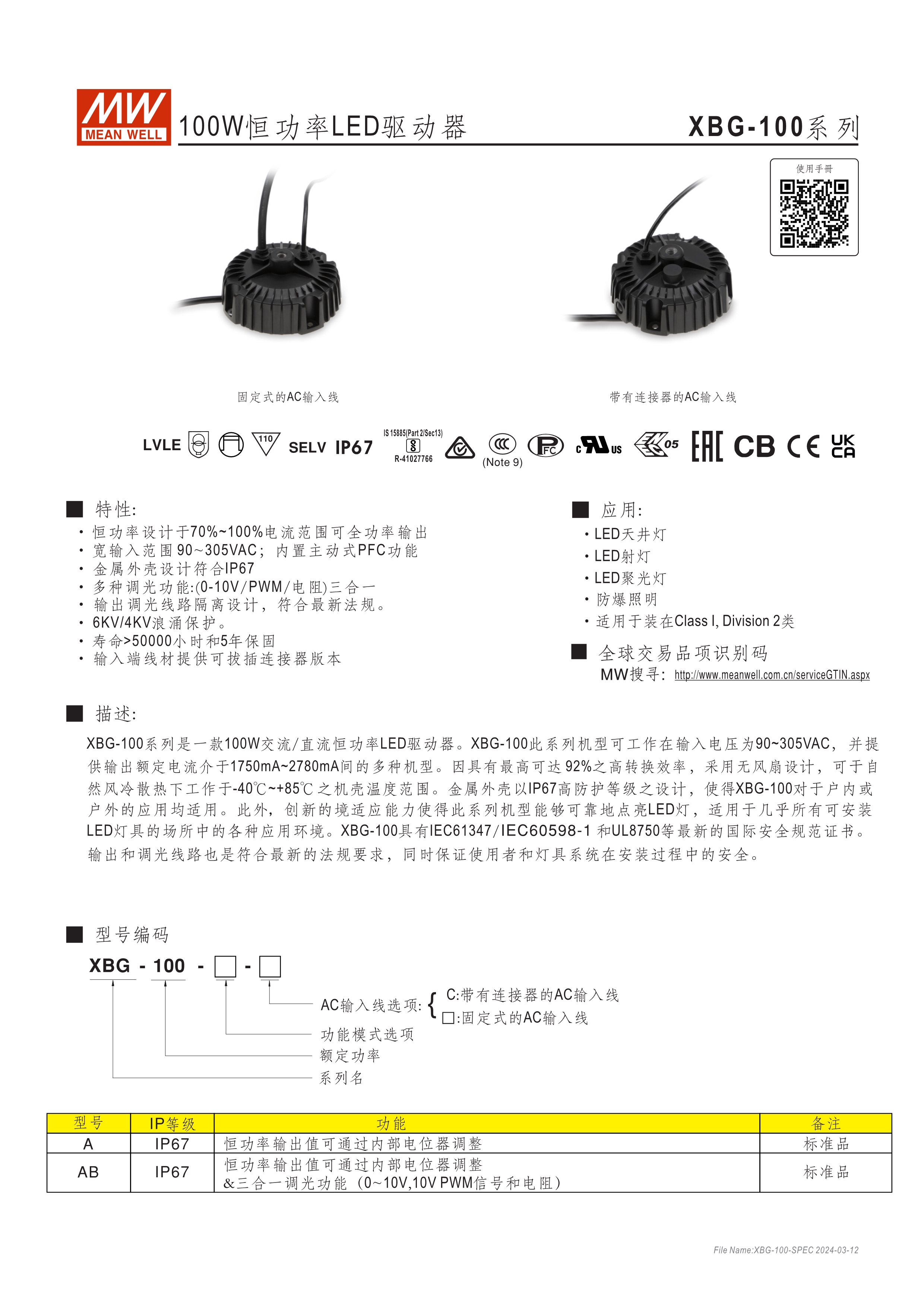 寬電壓范圍100~305VAC交流輸入 主動(dòng)式PFC及定功率恒流設(shè)計(jì) 輸入線材增加防水接頭方便使用 雷擊保護(hù)設(shè)計(jì):6KV/4KV 保護(hù)種類:短路、過電壓、過溫度 產(chǎn)品壽命>50,000 hrs and 5年保固