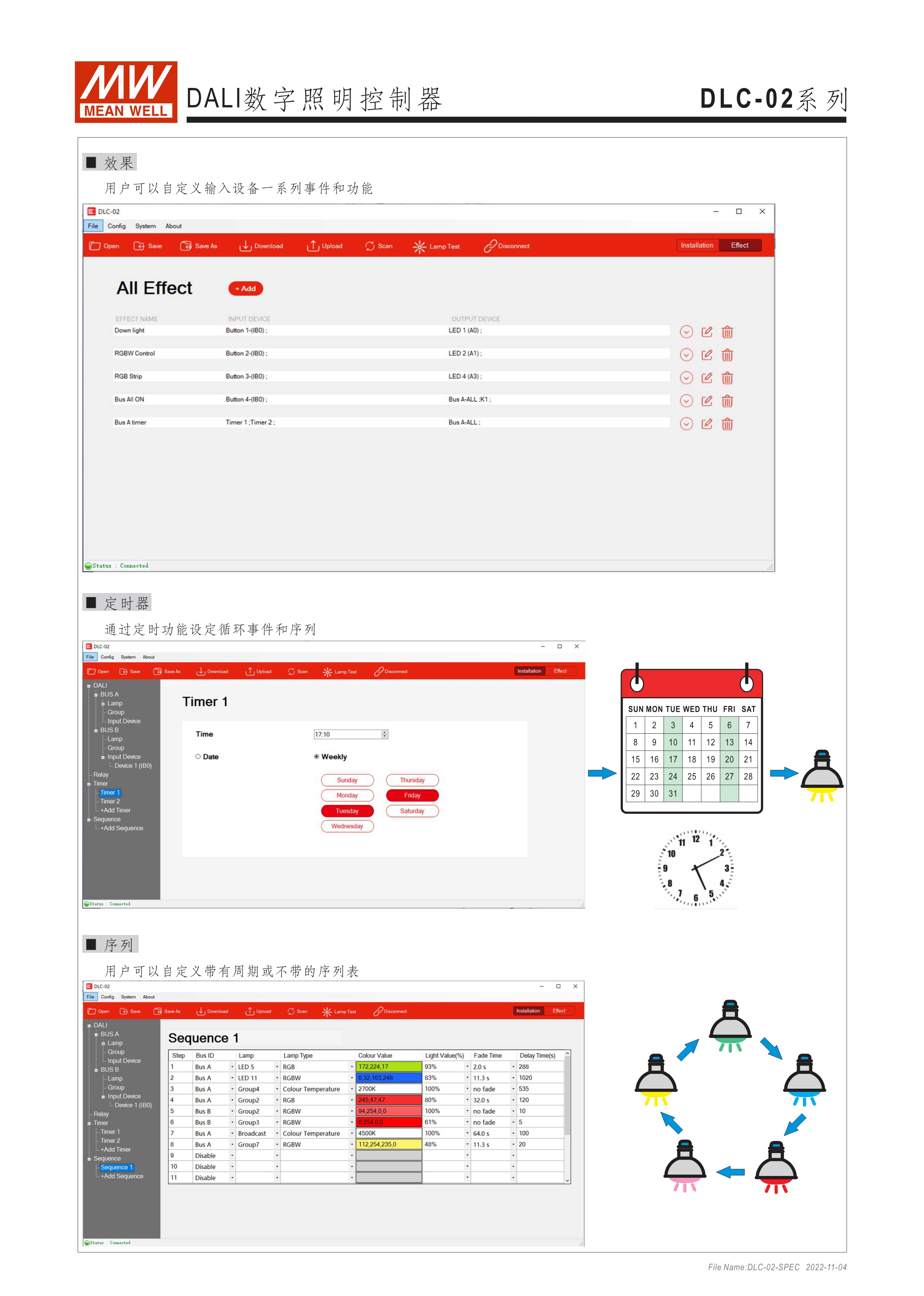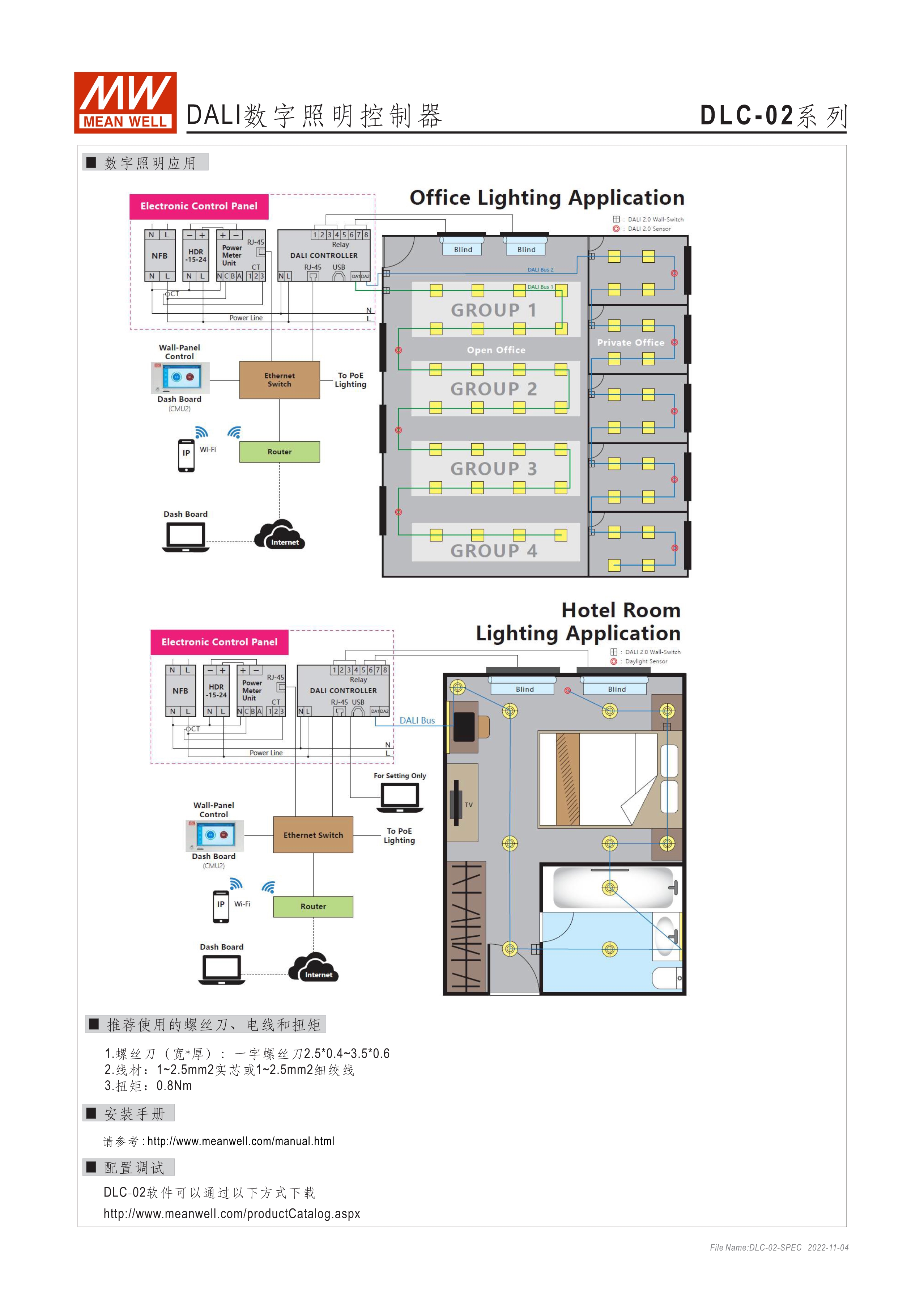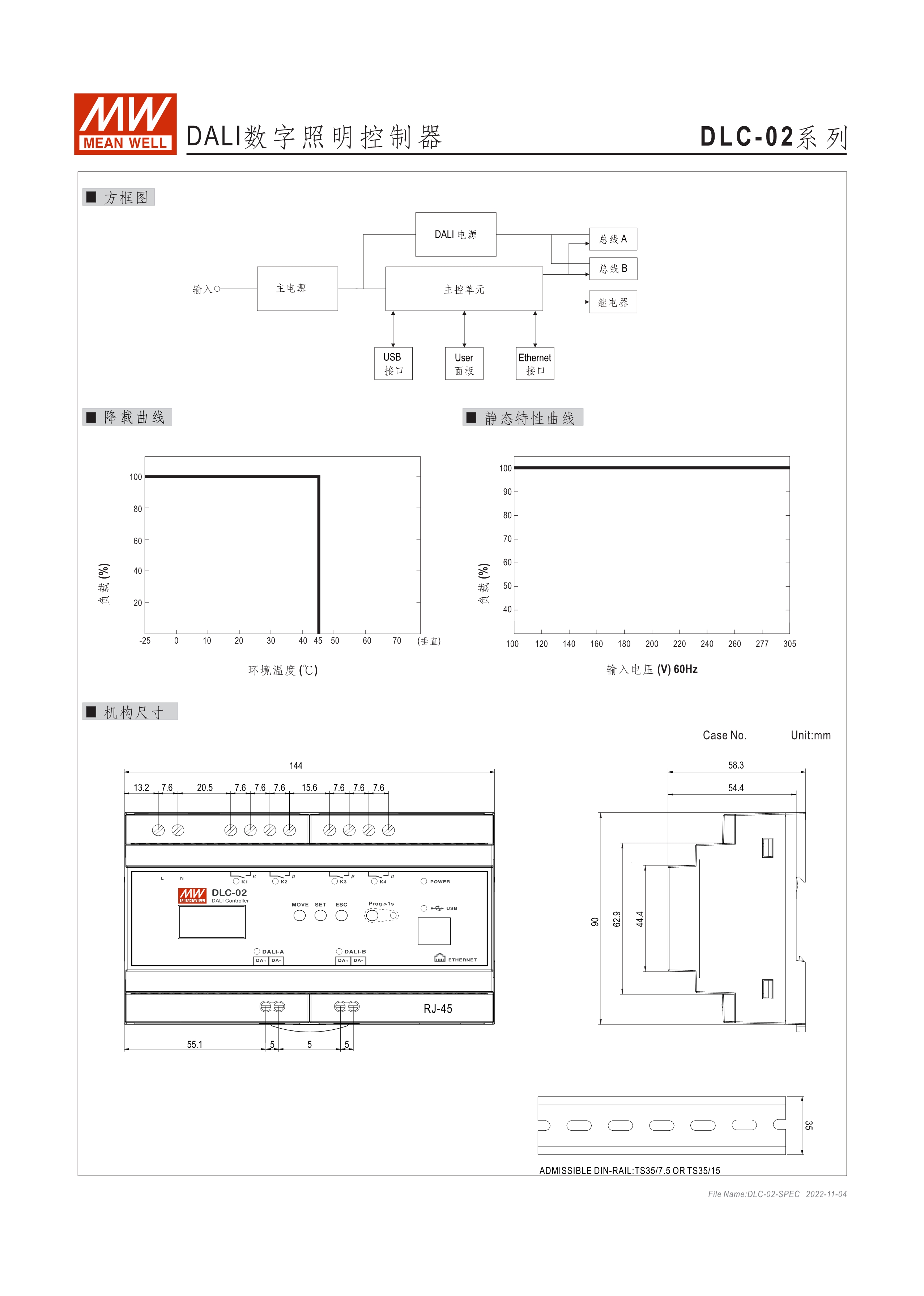 符合IEC 62386 DALI-2,Part 101/103/207/208/301/302/303/304標(biāo)準(zhǔn) 2組獨(dú)立DALI總線,可接Control Gear及Control Device搭配使用 4路可控繼電器,接觸容量5A,可當(dāng)電器開(kāi)關(guān)或兩組電動(dòng)窗簾使用 可搭配DLC軟體做現(xiàn)場(chǎng)系統(tǒng)設(shè)定,或透過(guò)網(wǎng)路線從遠(yuǎn)端做修改設(shè)定 透過(guò)本體液晶顯示螢?zāi)患安倏匕粹o,可做簡(jiǎn)單設(shè)定和狀態(tài)查詢(xún) 內(nèi)建Timer晶片,可搭配DLC軟體做行程控制設(shè)定 通訊介面接口:RJ-45及KNX,可與其他樓宇自動(dòng)化系統(tǒng)做連線擴(kuò)充使用 采導(dǎo)軌式設(shè)計(jì),體積小巧僅8SU寬度(144x 90x 58.4mm)