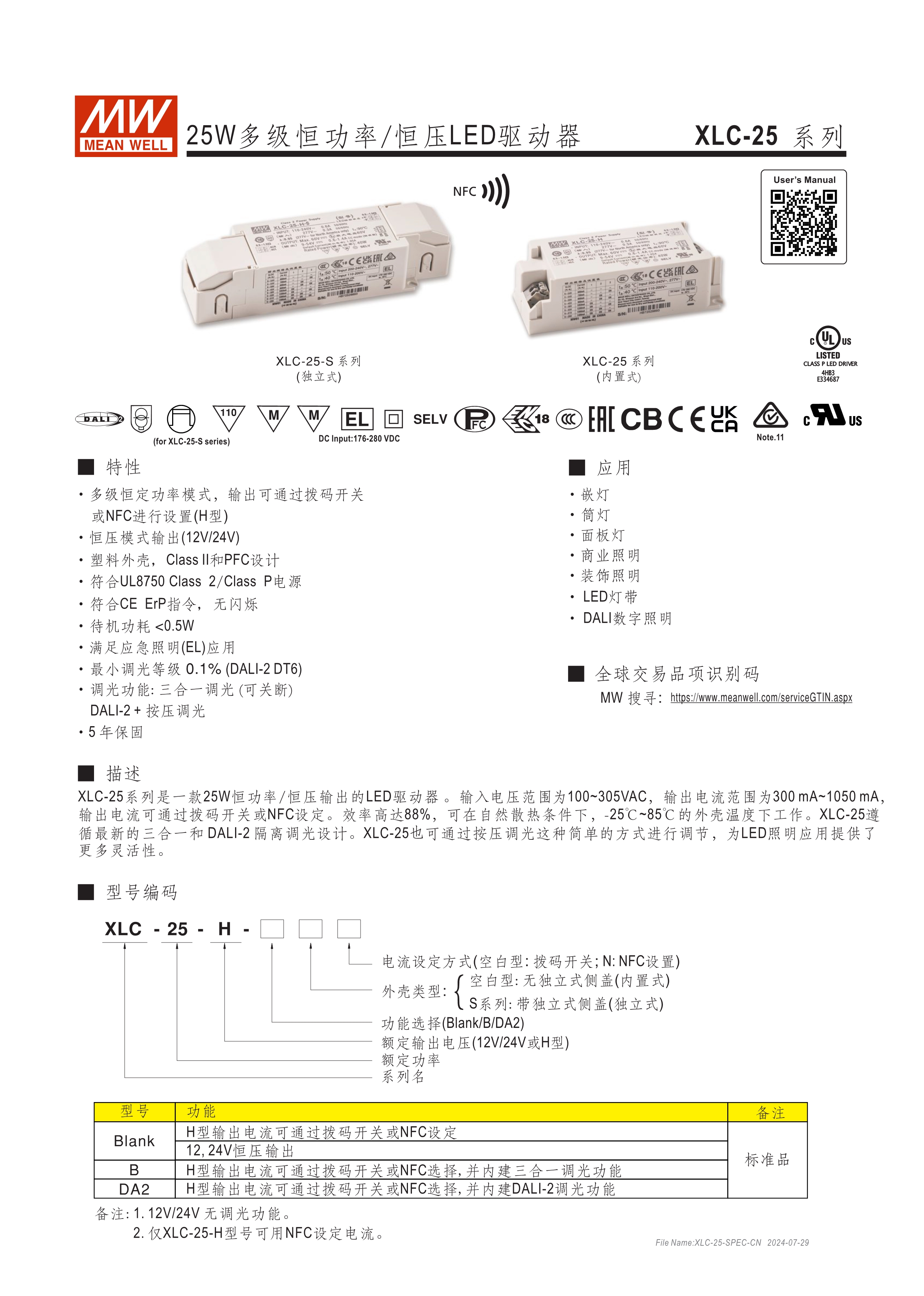 恒功率設(shè)計可寬范圍調(diào)整輸出電流(H型) 恒壓輸出機(jī)型可選12V/24V/48V 電流多段可調(diào)(快插端子式) 全電壓輸入110~305V AC 具PFC功能 塑膠殼雙重絕緣及Class II/2設(shè)計 符合IEEE 1789及Erp無頻閃標(biāo)準(zhǔn) 待機(jī)功耗<0.5W 最低調(diào)光亮度<0.1% (DALI-2 DT6) 符合應(yīng)急照明(EL)功能 調(diào)光功能:三合一/DALI-2、IoT/KNX(選配) 輸出與調(diào)光線路間符合隔離設(shè)計 獨立型或內(nèi)置型LED驅(qū)動電源可選 5年保固及>50,000 hrs壽命