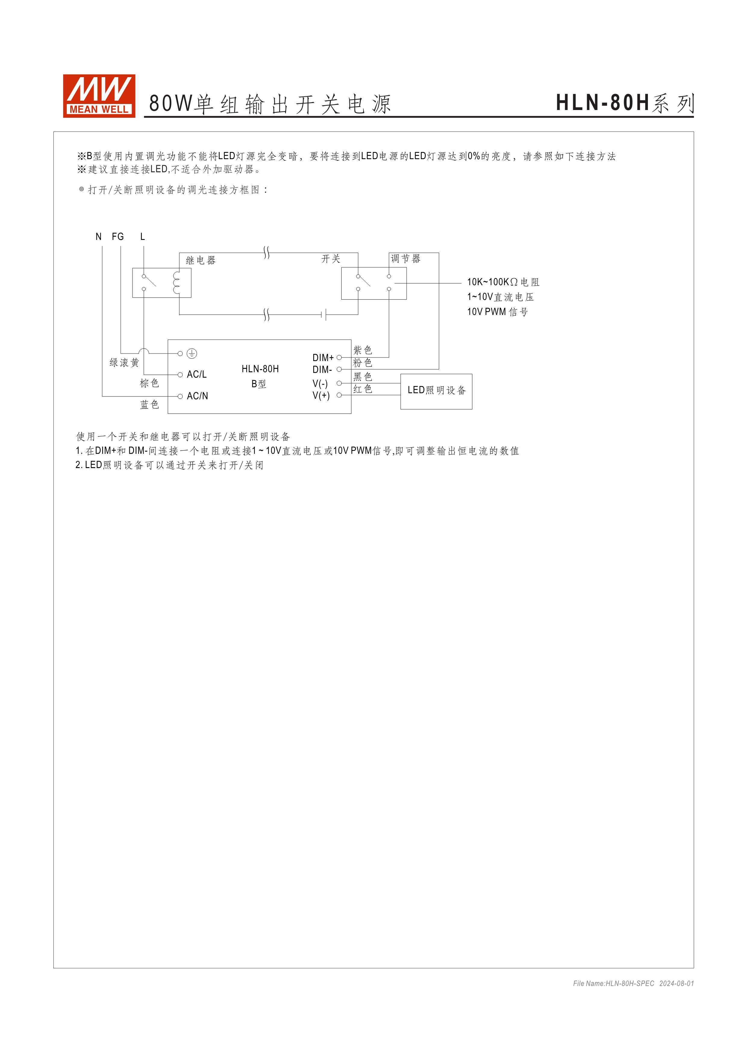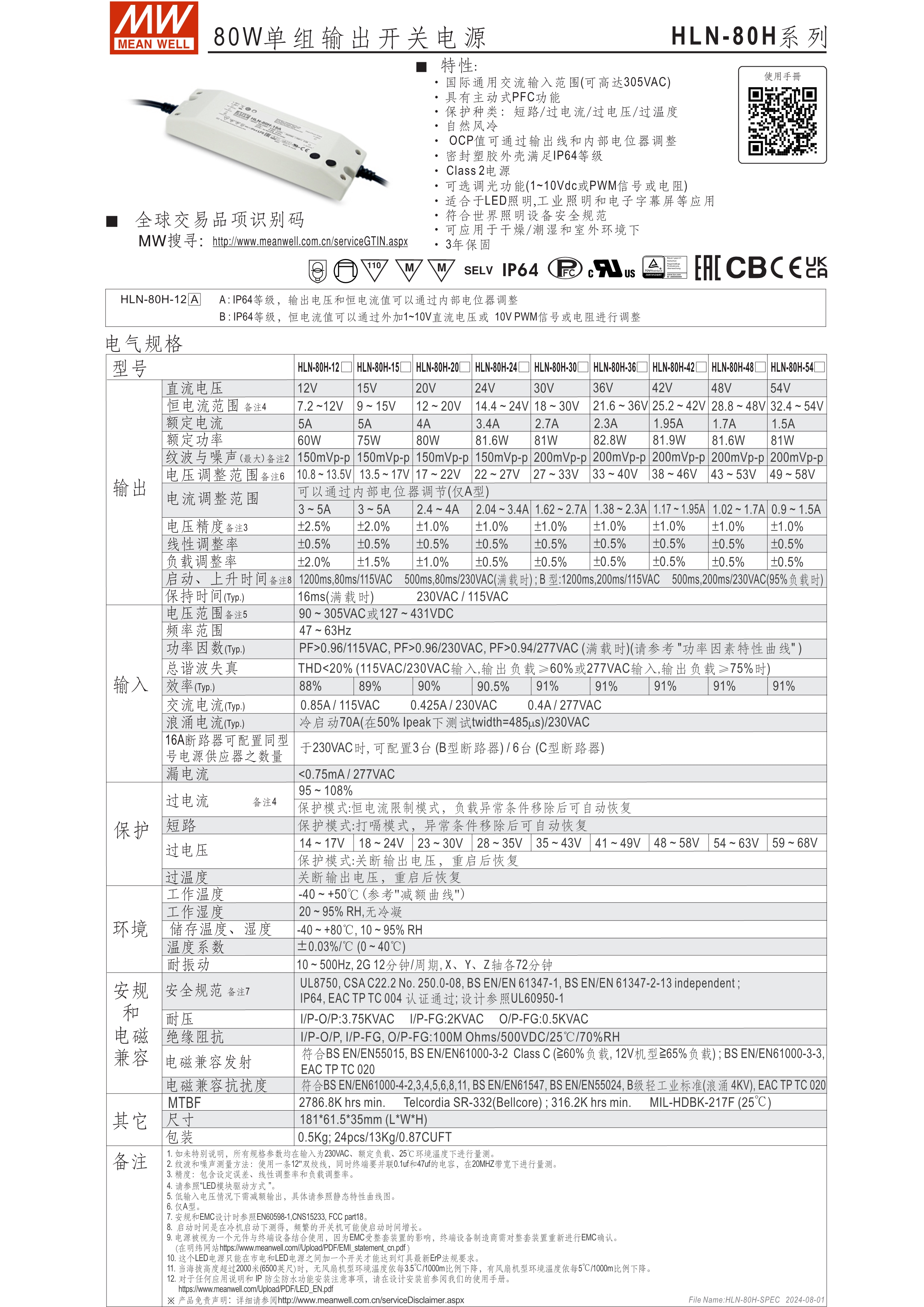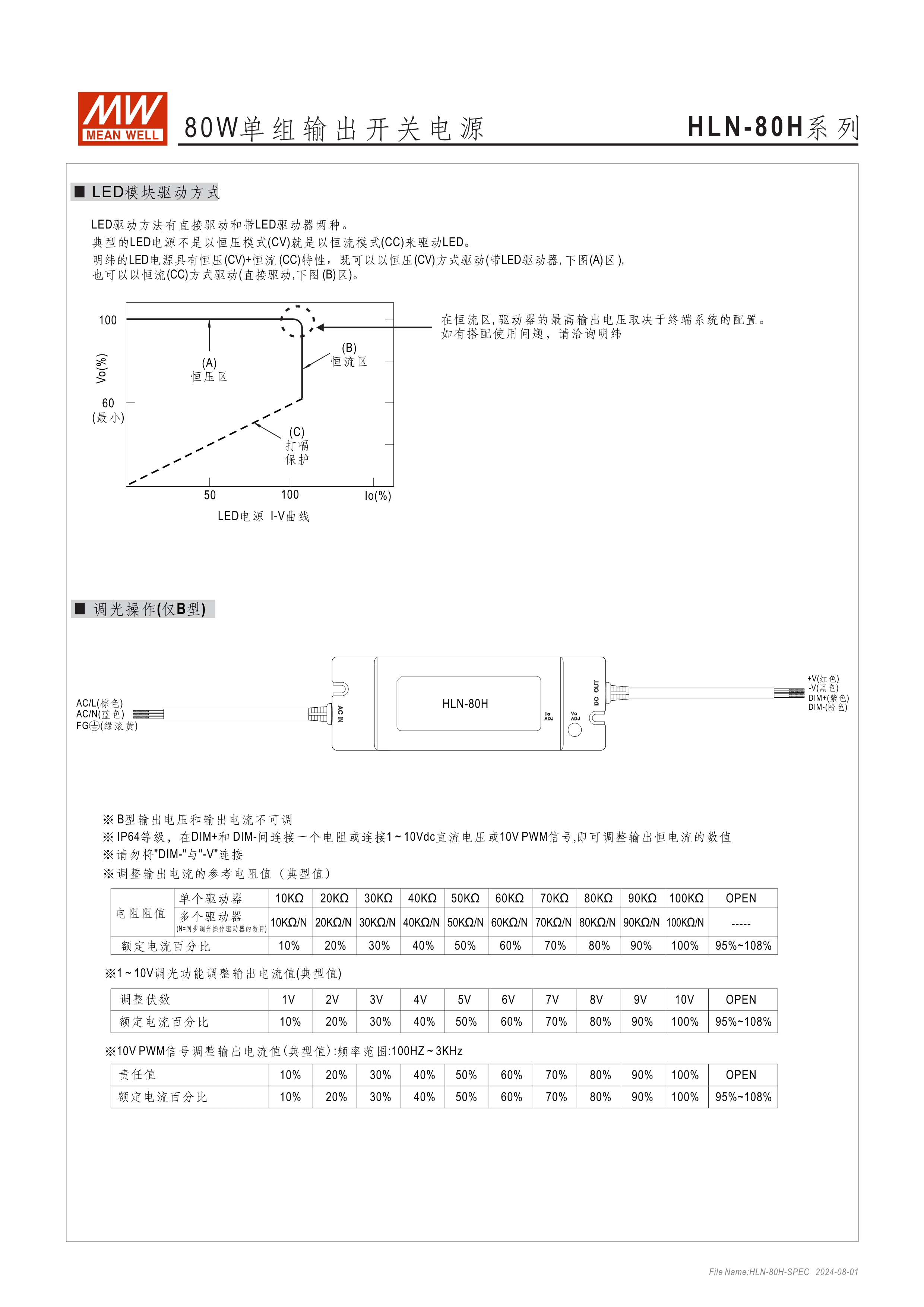 90~305VAC交流輸入, 內(nèi)建主動(dòng)式功率因子矯正功能(active PFC) 塑料外殼,IP64防護(hù)等級(jí) B type機(jī)種:內(nèi)建三合一調(diào)光功能(1~10VDC,PWM信號(hào)或電阻) A type機(jī)種:用戶可彈性調(diào)整輸出電壓與電流 適合于LED室內(nèi)照明及LED電子廣告牌相關(guān)應(yīng)用