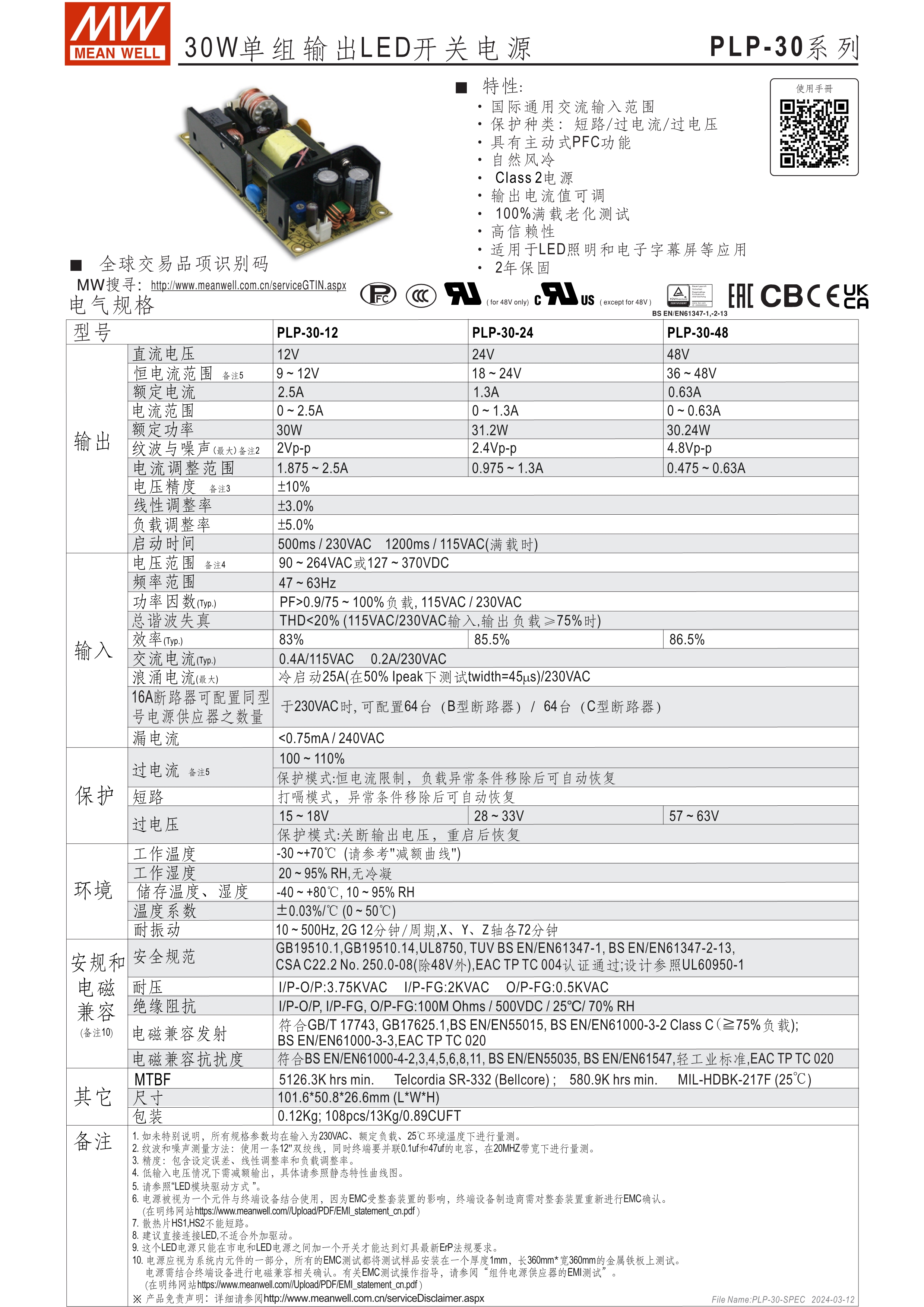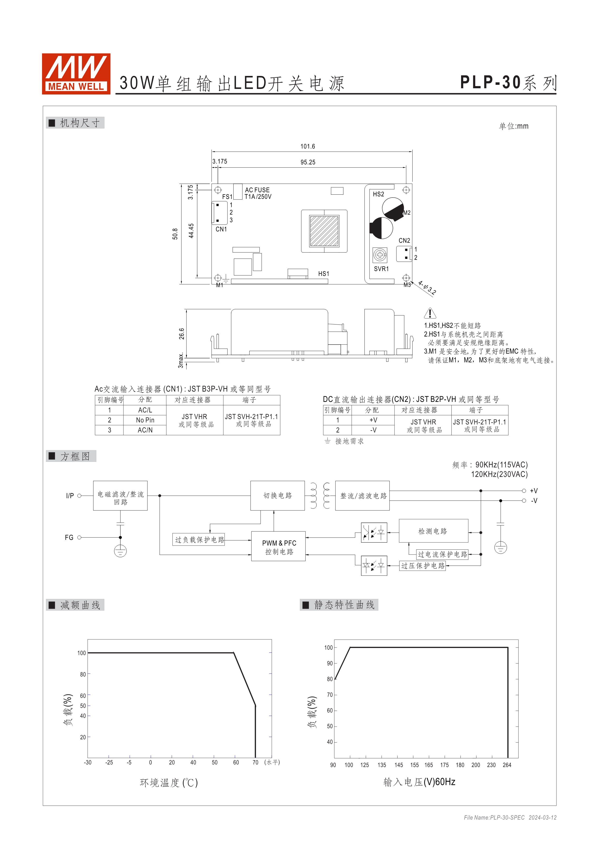90~264VAC交流輸入, 內(nèi)建主動(dòng)式功率 因子矯正功能(active PFC) 適合內(nèi)置于LED照明系統(tǒng)