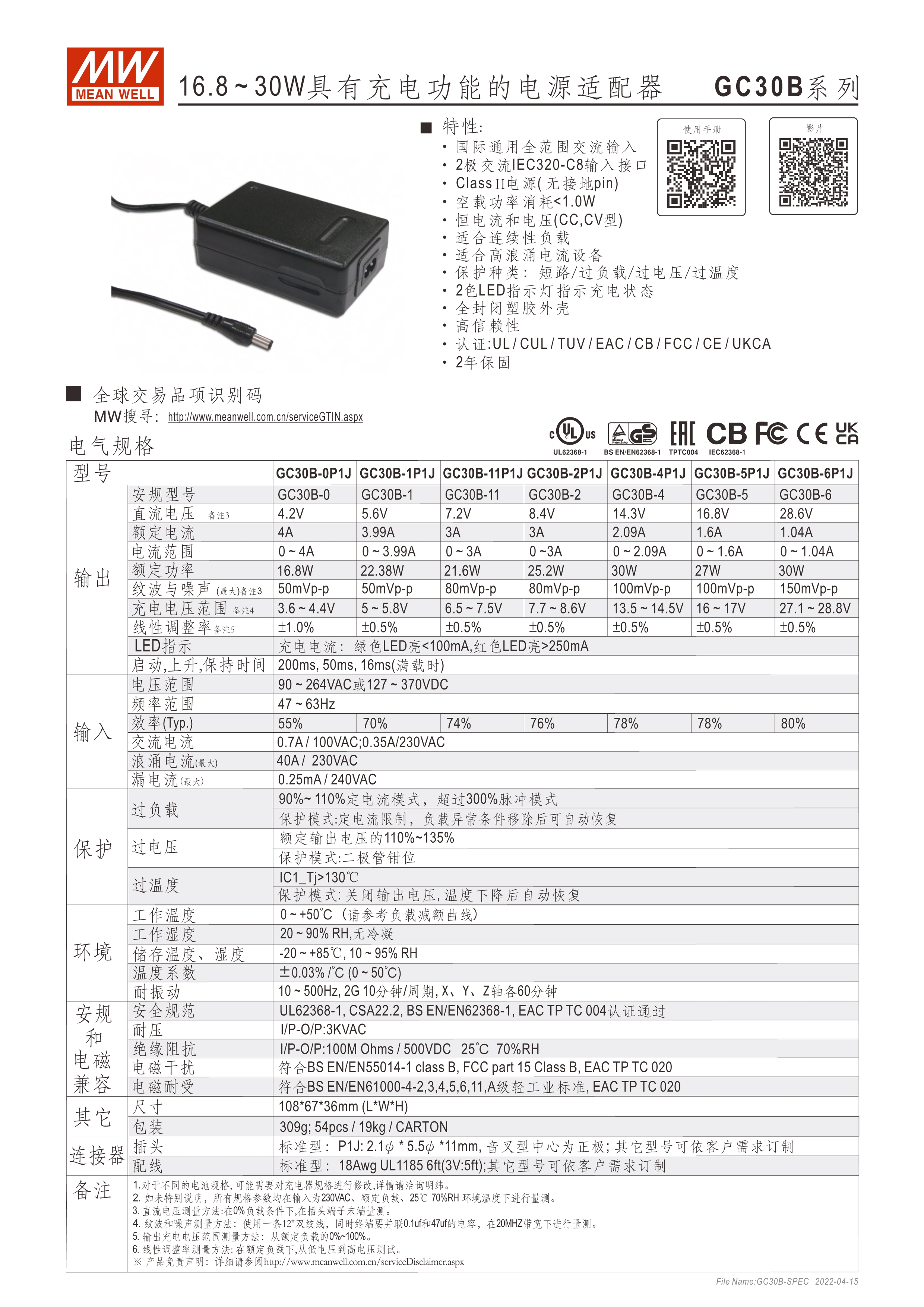 便攜式綠能適配器型充電器 塑膠殼、無風(fēng)扇自然散熱、使用不燙手 兩段式充電 (C.C./C.V.) 高效低耗 (待機(jī)<1W),低碳節(jié)能減排 AC輸入接口 A型:IEC320-C14、B型:IEC320-C8、 E型:歐插、U型:美插 標(biāo)準(zhǔn)DC輸出接頭 (可訂制其他款式插頭) 2年保固