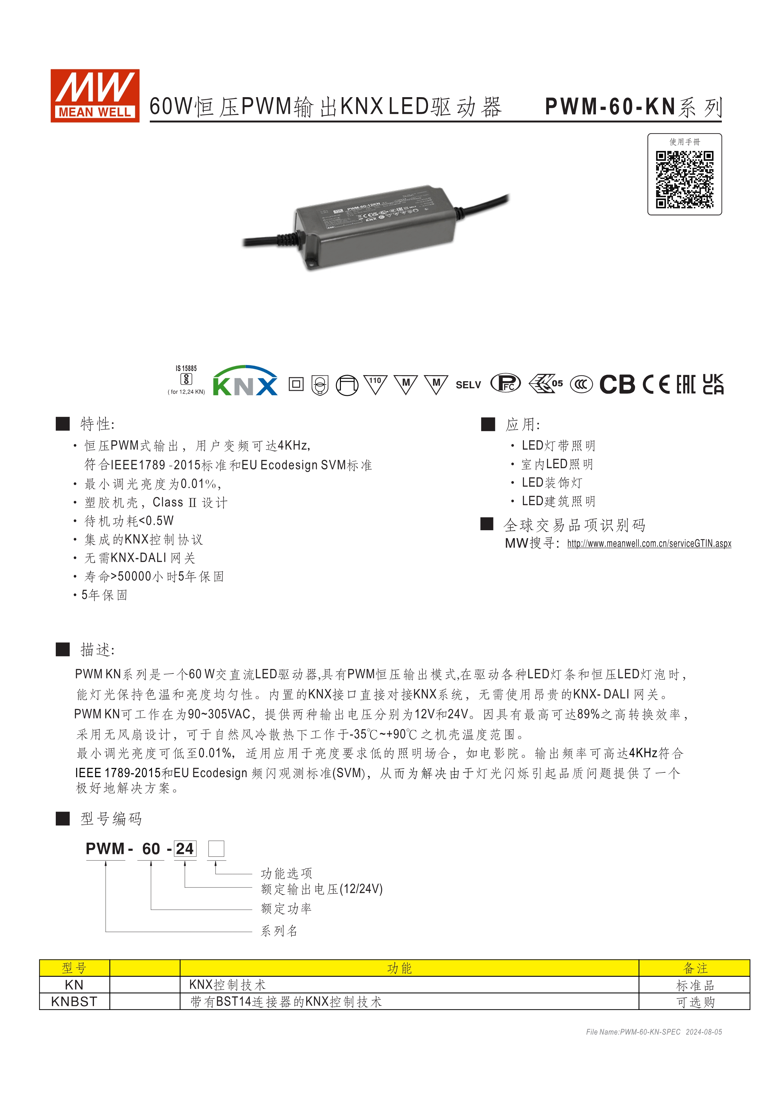 恒壓PWM型式輸出,用戶可調(diào)整工作頻率高達(dá)4KHz 內(nèi)建主動(dòng)式PFC 功能 空載功耗<0.5W/待機(jī)功耗<0.5W 整合KNX控制接口 不須KNX-DALI 網(wǎng)關(guān)