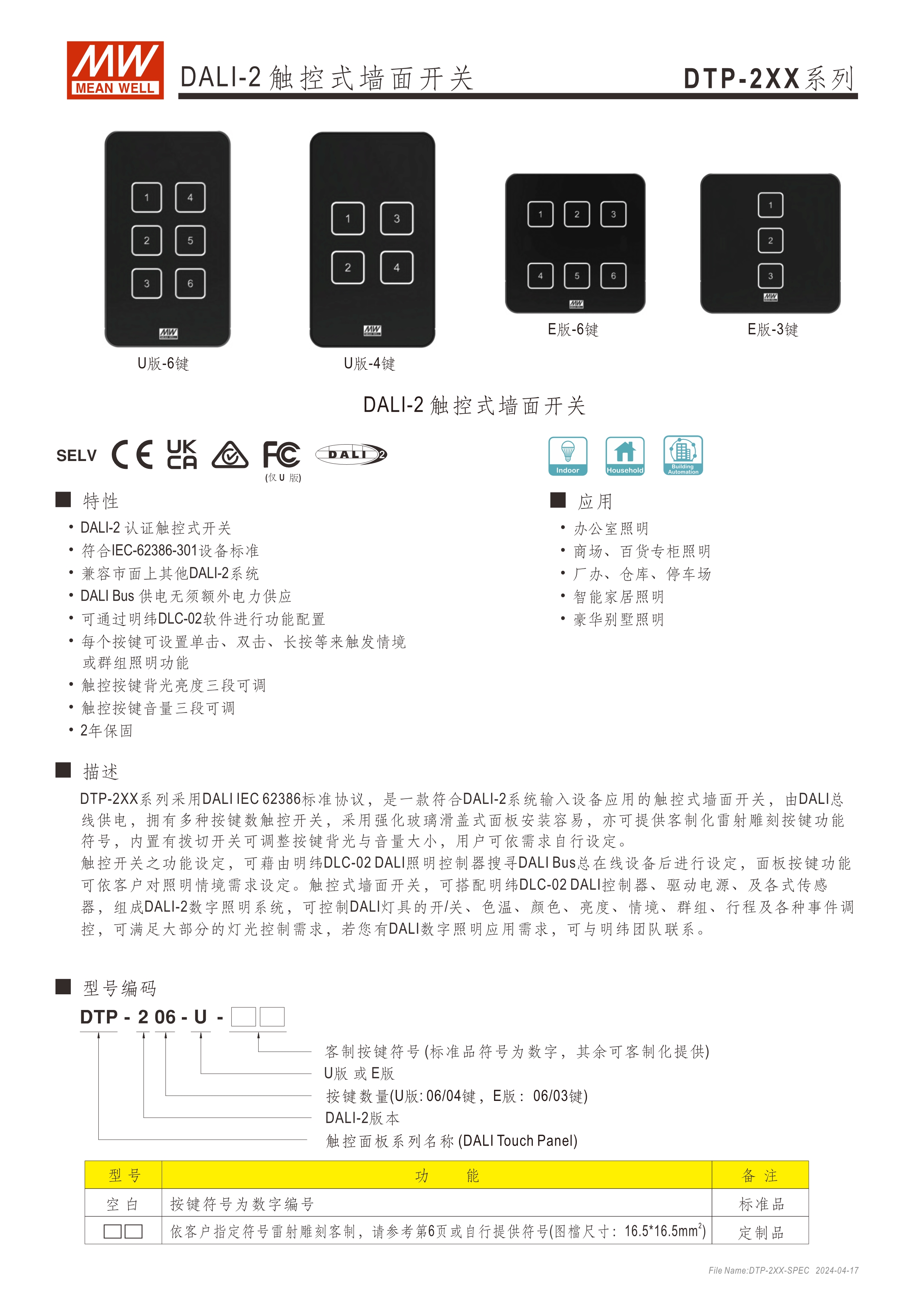 DALI-2 認證觸控式開關 符合IEC-62386-301標準設備 DALIBus供電無須額外電力供應 每個按鍵可設置單擊、雙擊、長按等來觸發(fā)情境或群組照明功能