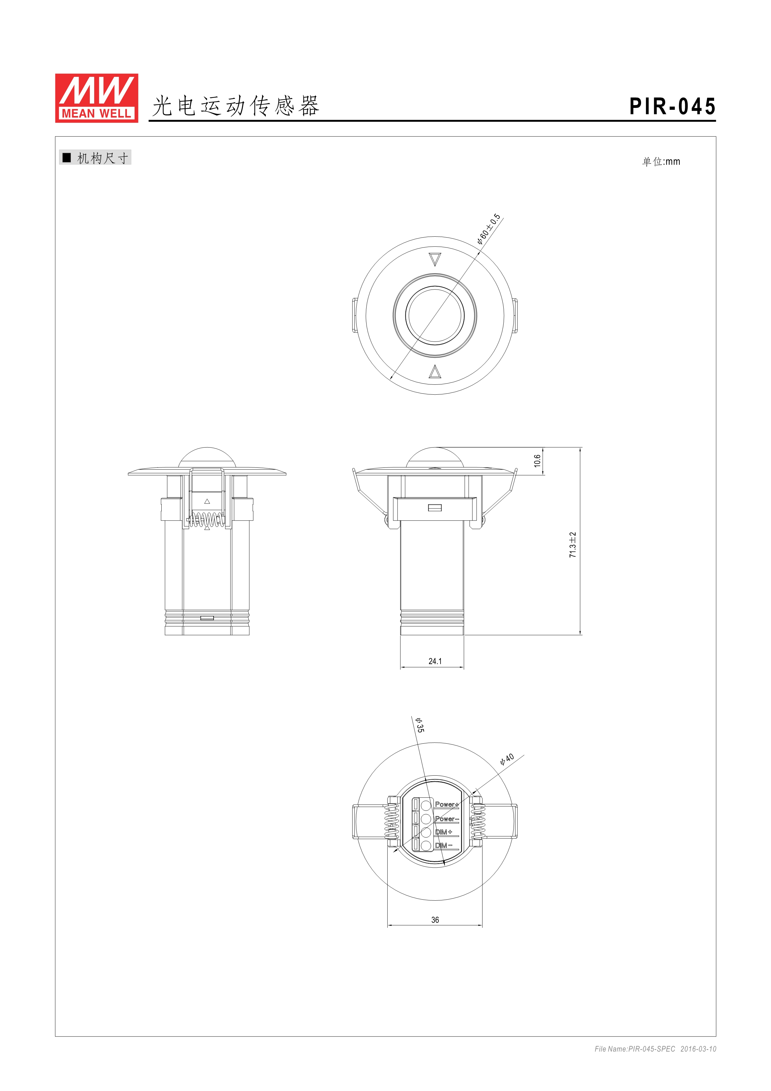內(nèi)置被動(dòng)紅外線傳感器(PIR)模塊 MCU控制器、無繼電器 關(guān)燈延時(shí)/分級(jí)調(diào)光/靈敏度 可調(diào)