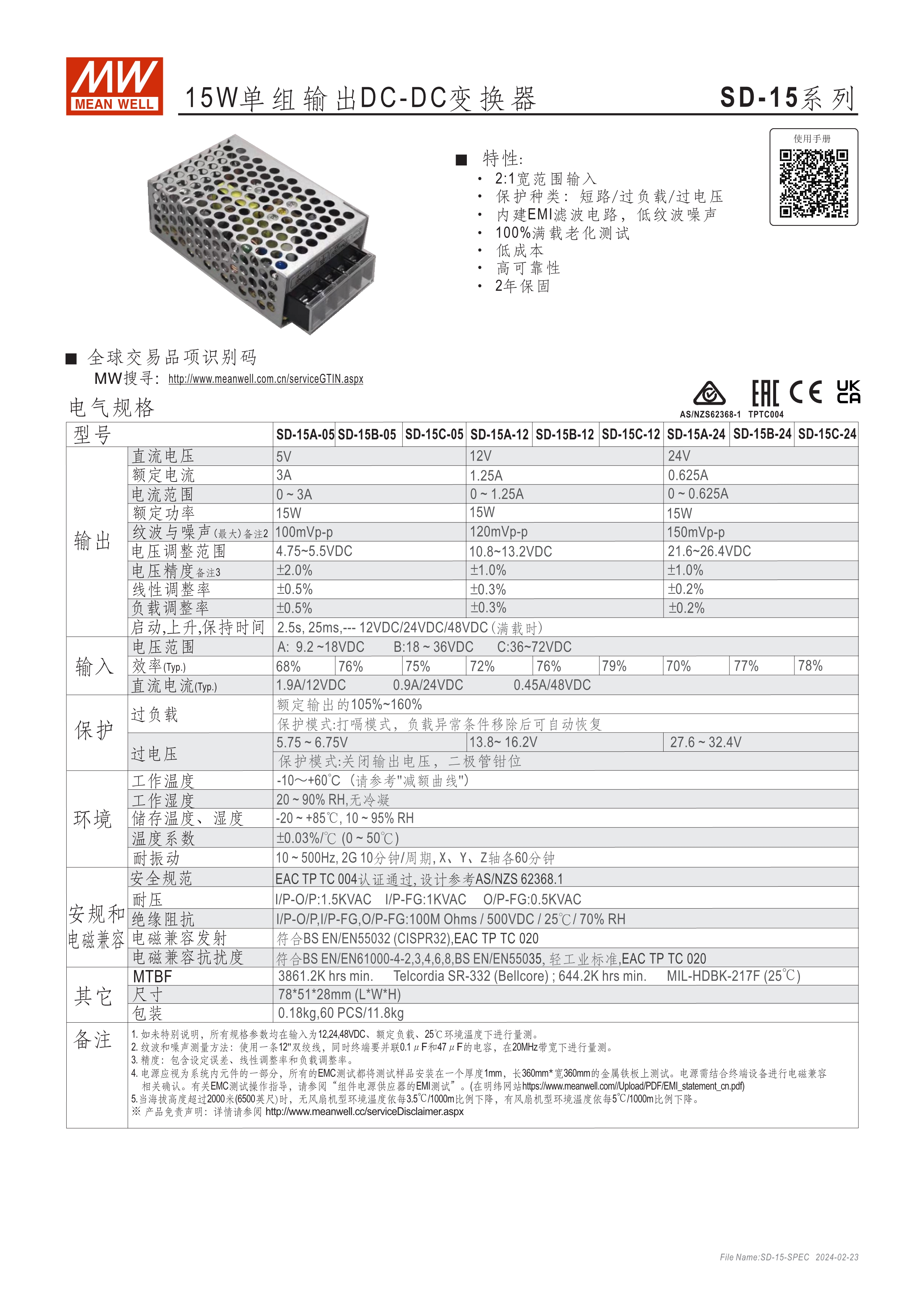 2:1 寬輸入范圍 ( SD-500/1000為4:1) 輸入/輸出隔離:1.5~2KVAC (依機(jī)型) SD-1000為1U 低高度設(shè)計(jì) (41mm) SD-500/1000具12V/0.25A 輔助輸出 SD-500/1000 內(nèi)建遙控及遙感功能 適合用于電池備援系統(tǒng)或各式交通工具上