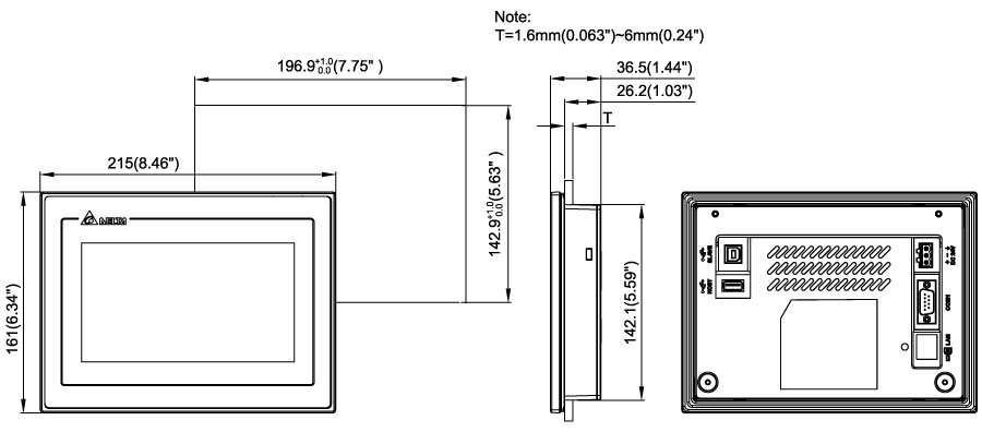 | 外觀尺寸 (W x H x D,mm) | 開孔尺寸 (W x H,mm) | |