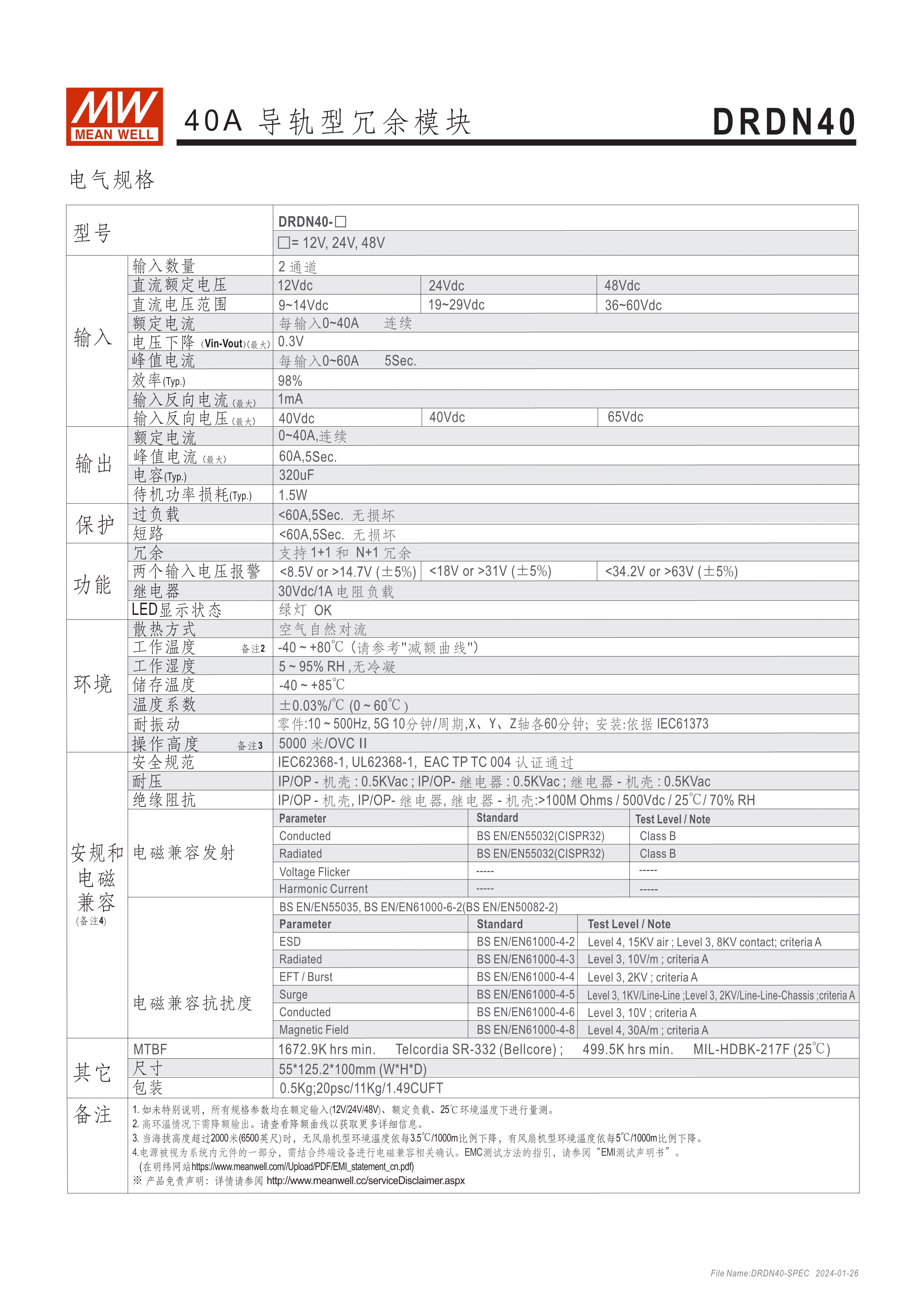 20A冗余模塊(Redundant Module) 20A/40A備援緩沖模塊(Buffer Module) 20A/40A DC UPS模塊(UPS Module) AC峰值電流抑制器