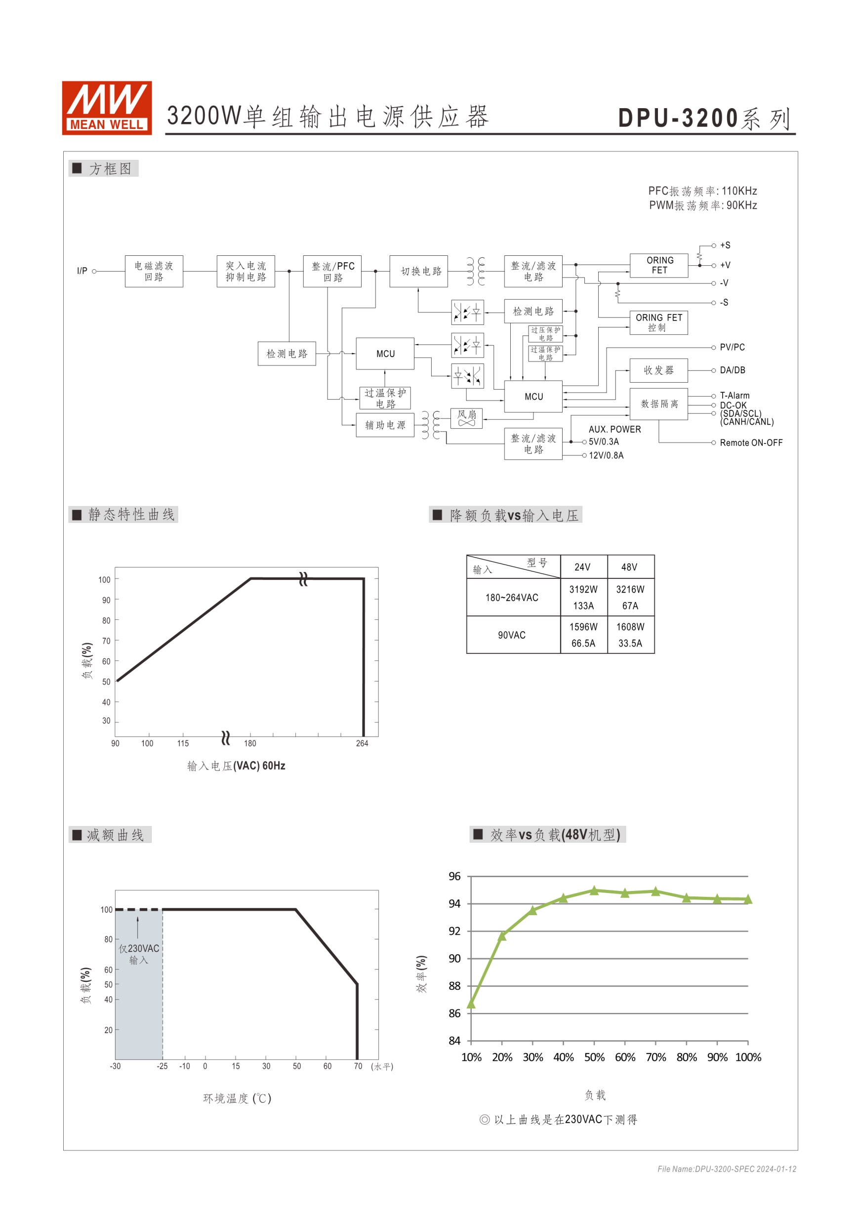 環(huán)球交流輸入/全局輸入電壓 內(nèi)建主動式功率因子矯正功能(Active PFC) 交換效率高達(dá)94.5% 直流散熱風(fēng)扇強(qiáng)制氣冷 輸出電壓與恒功率可調(diào)功能 內(nèi)建Or-ing FET,支持熱抽換/插拔功能 保護(hù)機(jī)制: 短路/過負(fù)載/過電壓/過溫度保護(hù) 可選配三防漆 認(rèn)證安規(guī): UL/TUV/EAC/CE/CB 5年保固