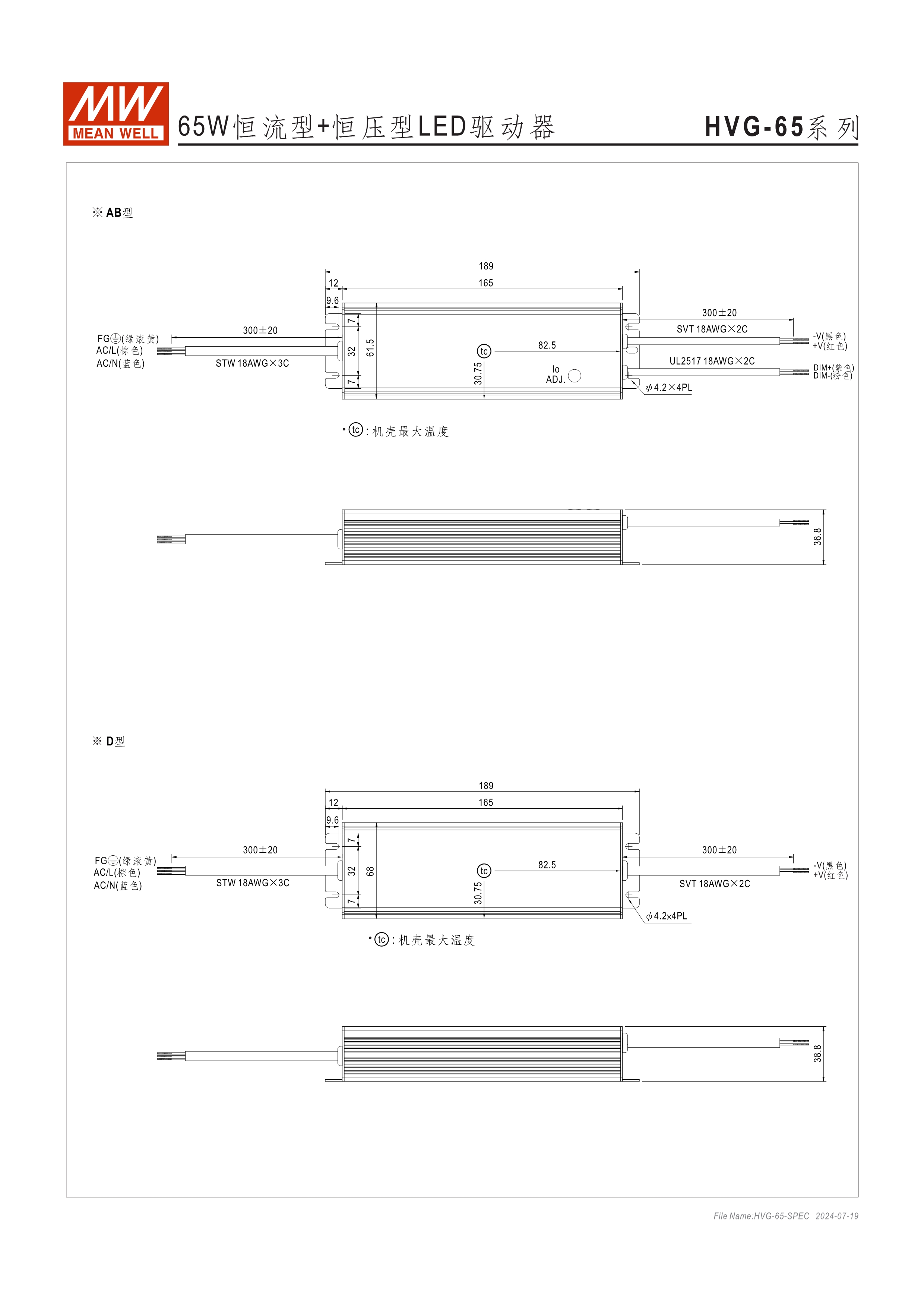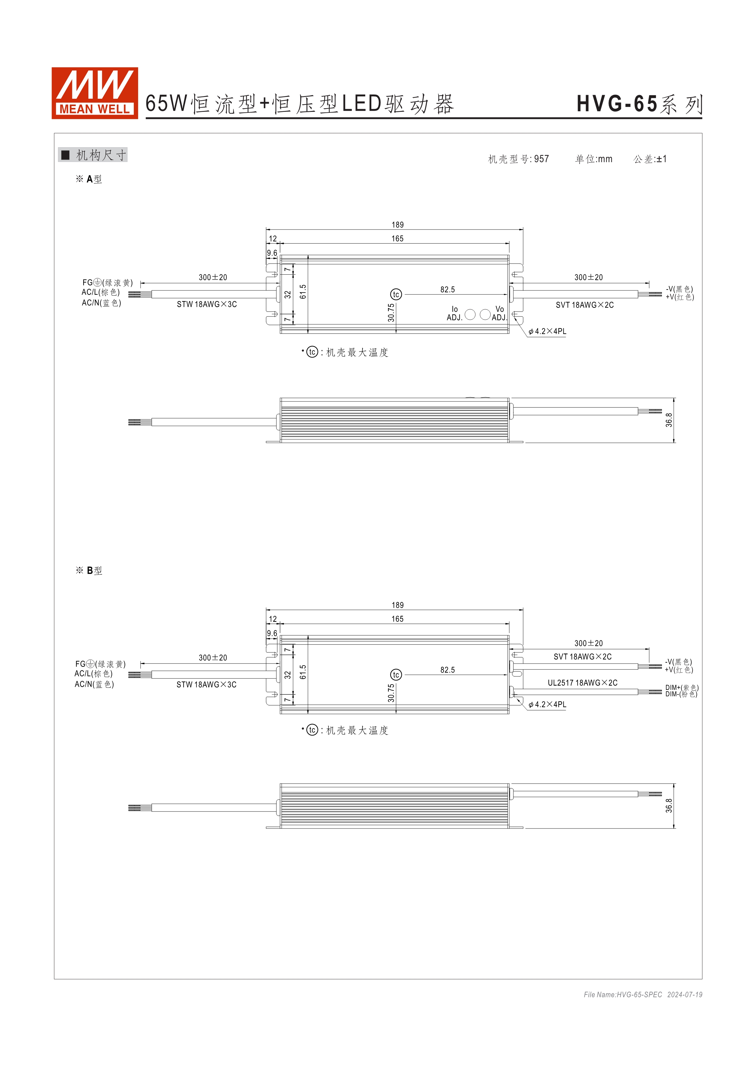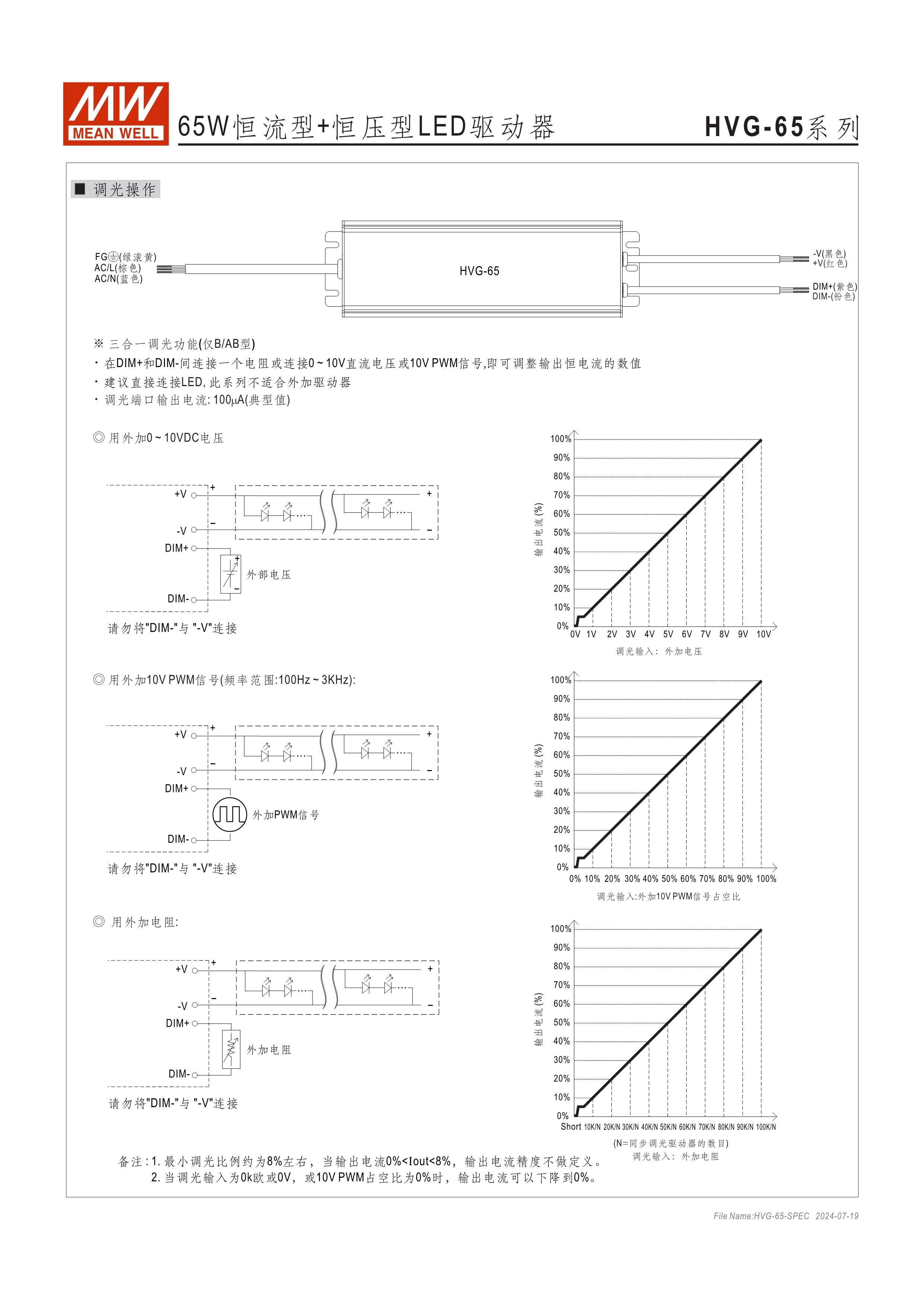 寬輸入范圍180~528VAC 金屬外殼,IP67/IP65防護等級可用于戶外與室內(nèi) 內(nèi)建主動式功率因子矯正功能(active PFC) 功能選項 : 輸出可經(jīng)由電位器調(diào)整;三合一調(diào)光(0~10Vdc或10V PWM信號或電阻,可關(guān)斷);定時調(diào)光;智能定時調(diào)光 Type "HL" LED電源適用在安裝于Class I, Division 2 類 危險地點之照明燈具(HVG-65及HVGC-65/100除外) 適合于LED路燈及戶外LED照明等應(yīng)用 5年保固期