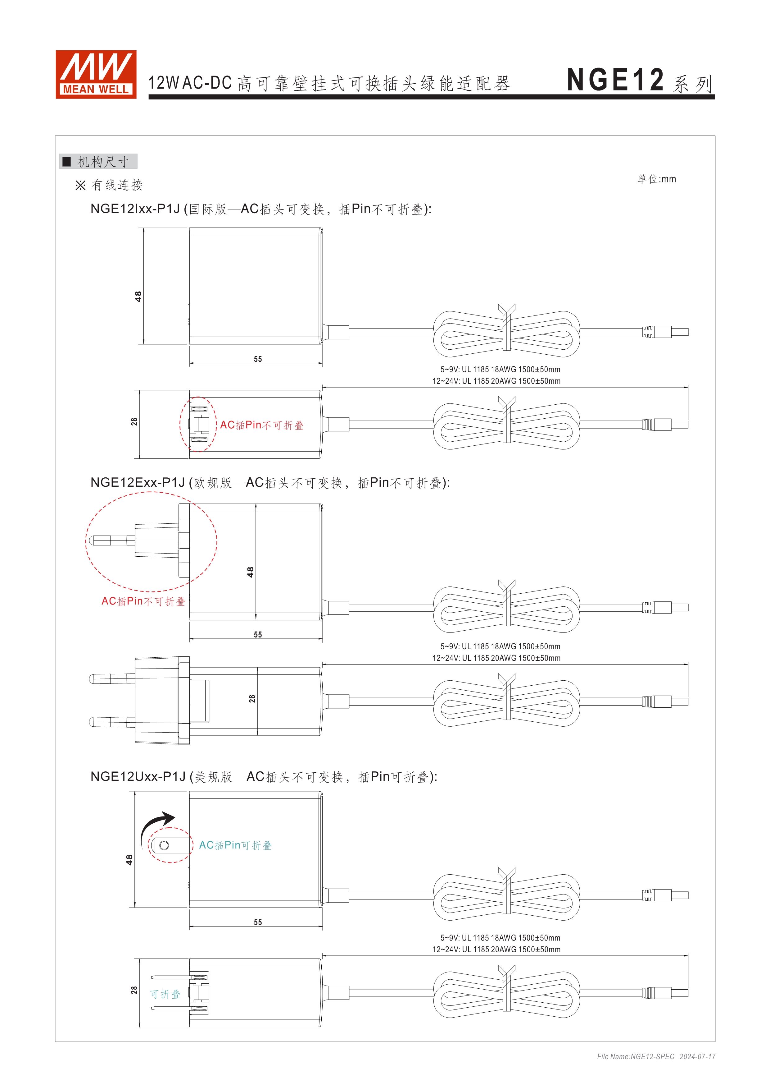 可換AC插頭 符合多領(lǐng)域全球認(rèn)證 (信息類 62368-1、醫(yī)療 60601-1, 家用 60335-1、工業(yè) 61558-1/-2-16) 全范圍AC輸入 2xMOPP, BF應(yīng)用 超窄面寬設(shè)計(jì)(28mm~30mm) 漏電流 <100uA 80~264V輸入 空載損耗<0.075W~0.1W 能效等級(jí)Level VII 保護(hù)功能:短路、過(guò)載、過(guò)電壓 漏電流 <100uA -30~70℃寬工作溫度 多種DC輸出轉(zhuǎn)接頭可更換 3年保固期