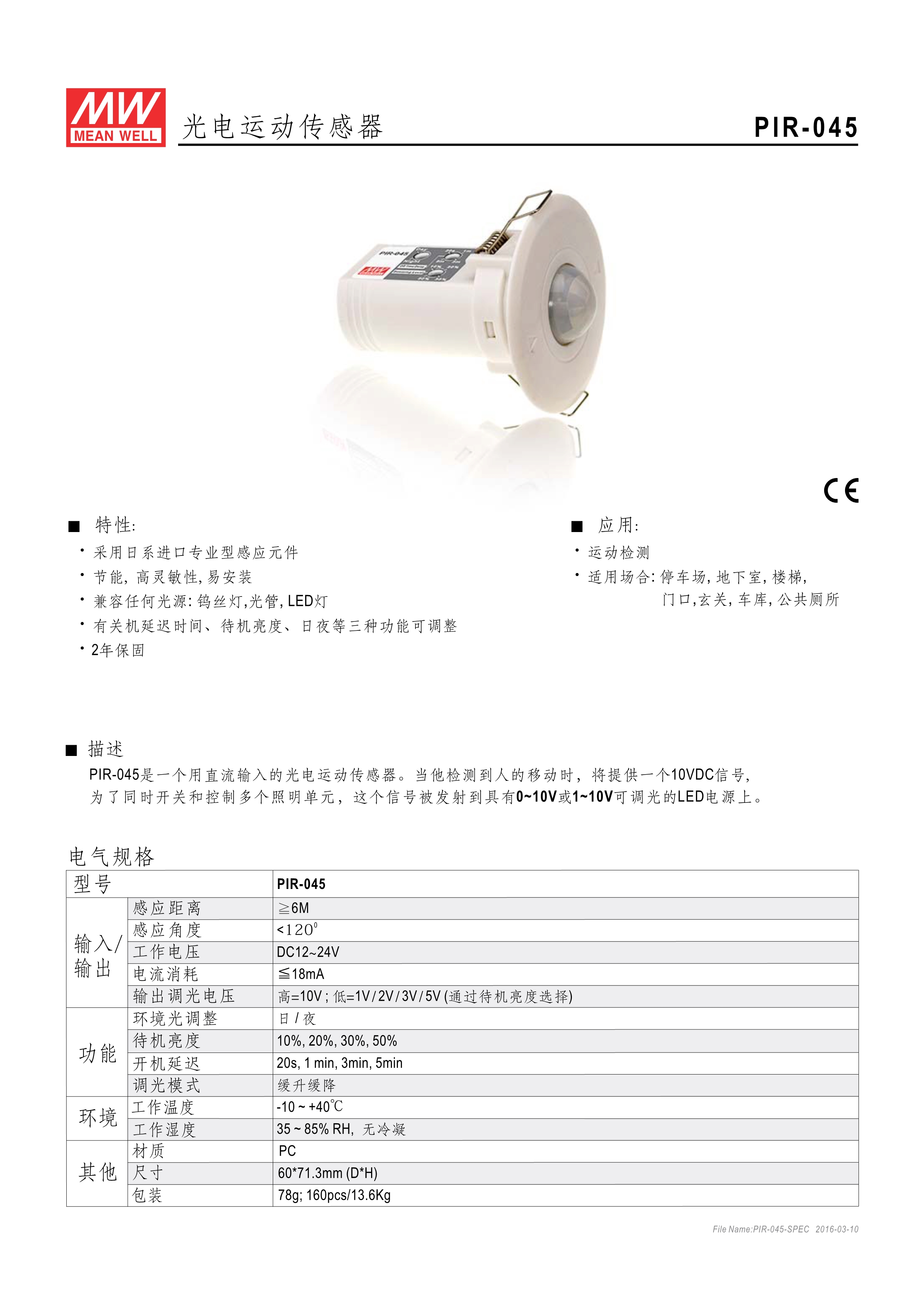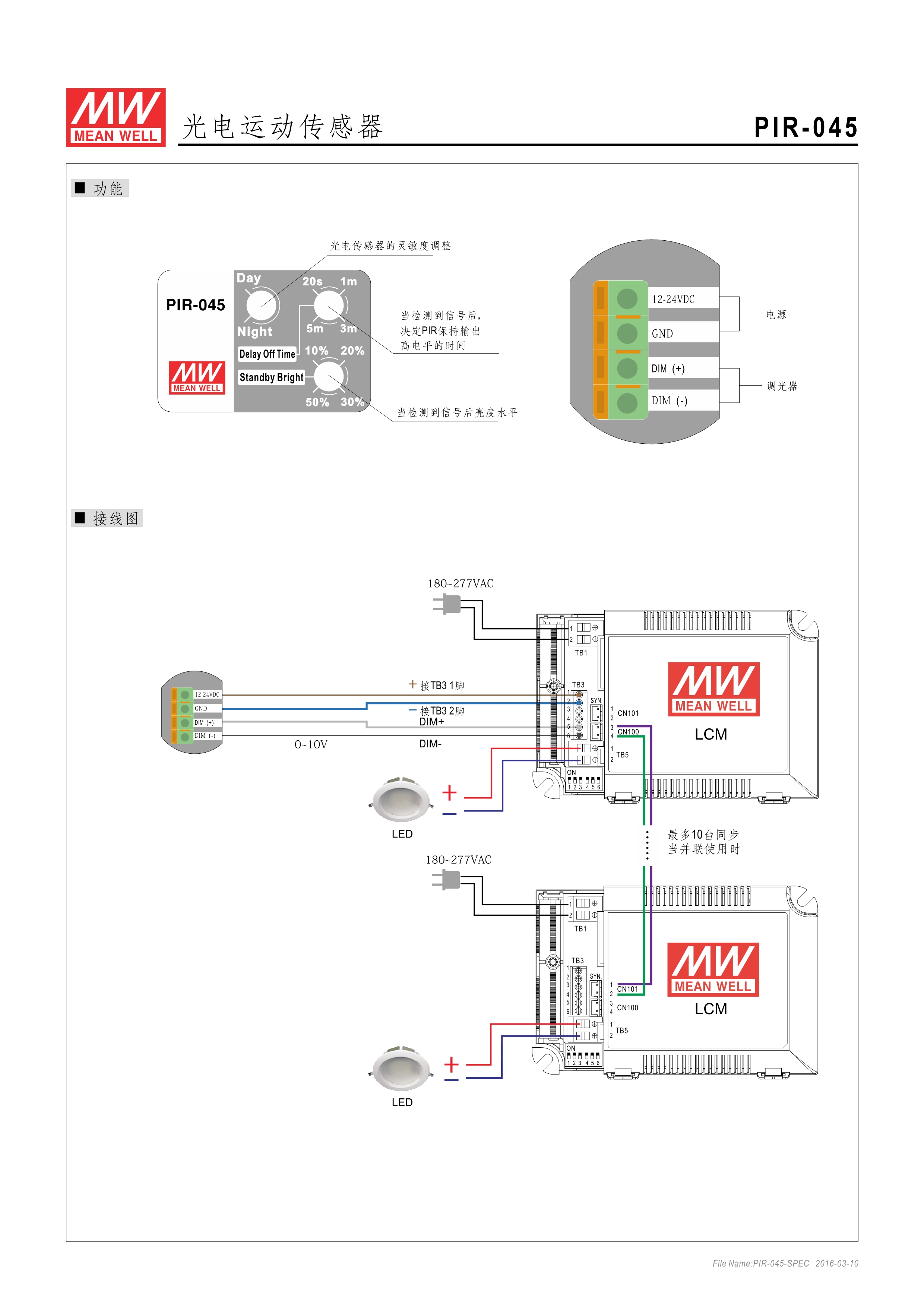內(nèi)置被動(dòng)紅外線傳感器(PIR)模塊 MCU控制器、無繼電器 關(guān)燈延時(shí)/分級(jí)調(diào)光/靈敏度 可調(diào)