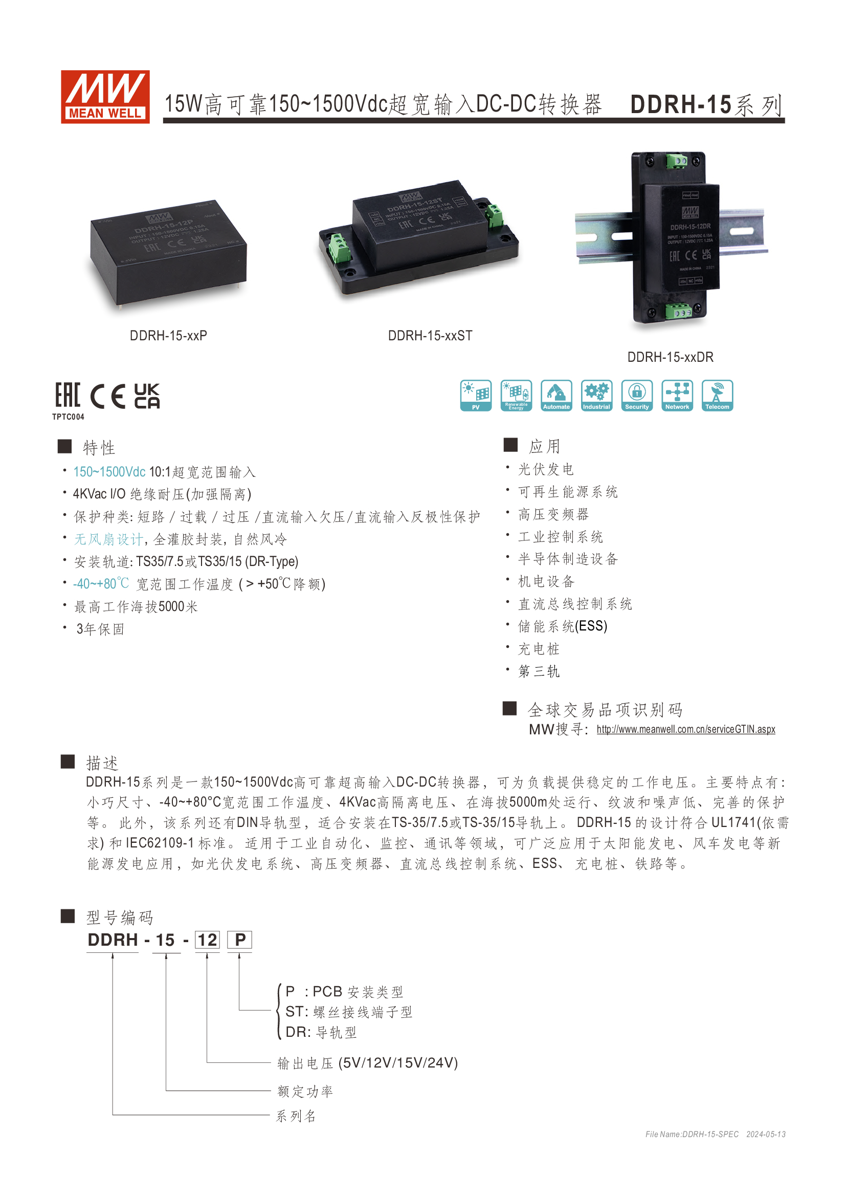 多種安裝方式可供選擇(基板型、端子式和導(dǎo)軌式) 10:1 超寬輸入范圍 內(nèi)部灌膠,提供防塵和防潮保護(hù) 超寬溫度范圍:-40℃~+80℃ 保護(hù)功能:短路保護(hù)、超載保護(hù)、過電壓保護(hù)、輸入電壓過低及極性反接保護(hù) 3年保固