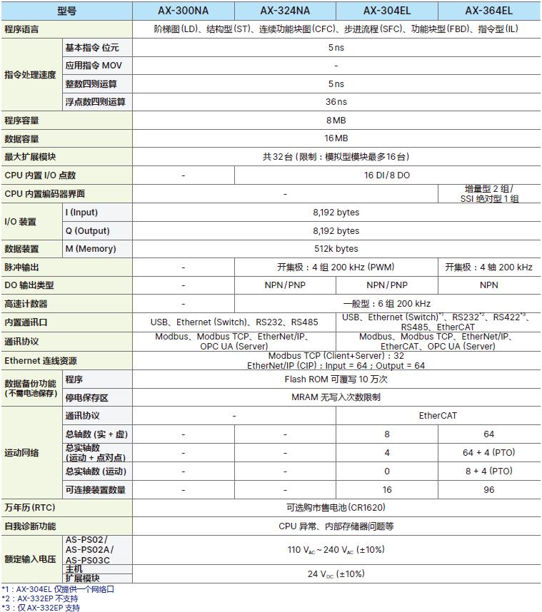 - AX-308E?/?AX-316E?/?AX-332E CPU最高可支持8?/?16?/?32軸EtherCAT (AX-332E 同步時(shí)間最快 1ms@32軸)